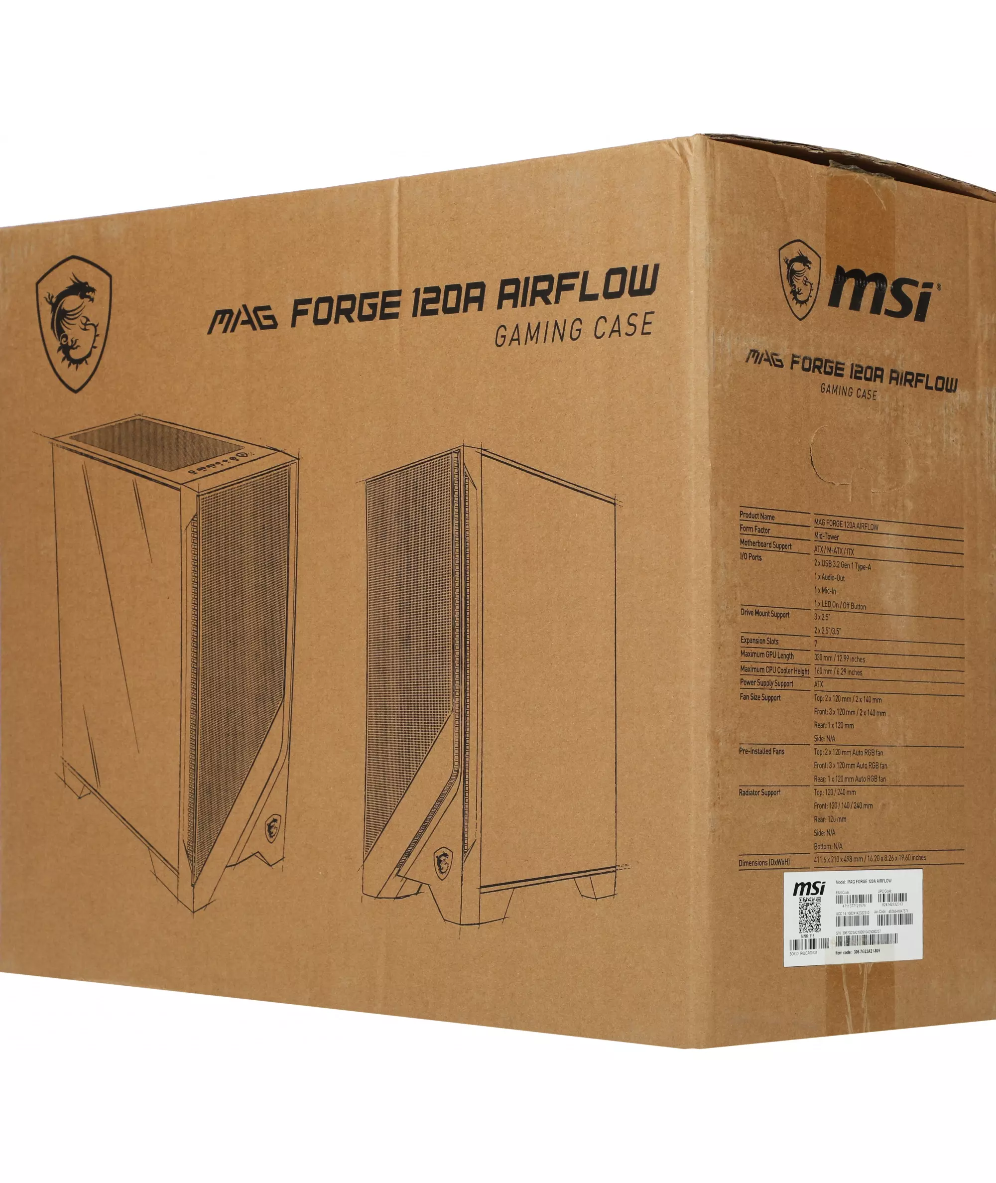 Корпус MSI MAG Forge 120A черный без БП ATX 2x120mm 2xUSB3.0 audio bott [306-7G23A21-809]