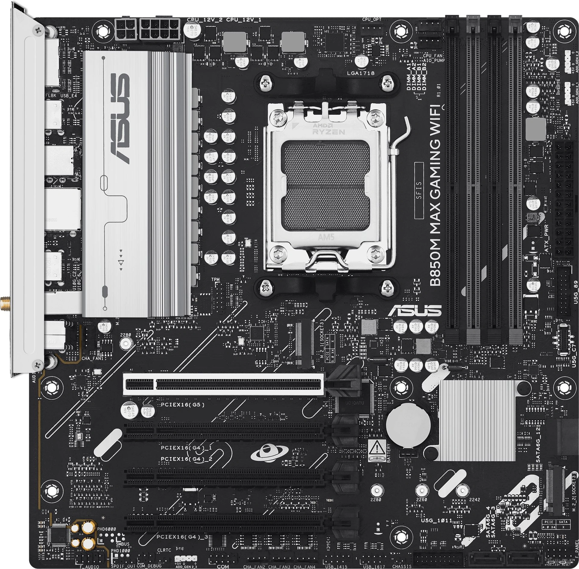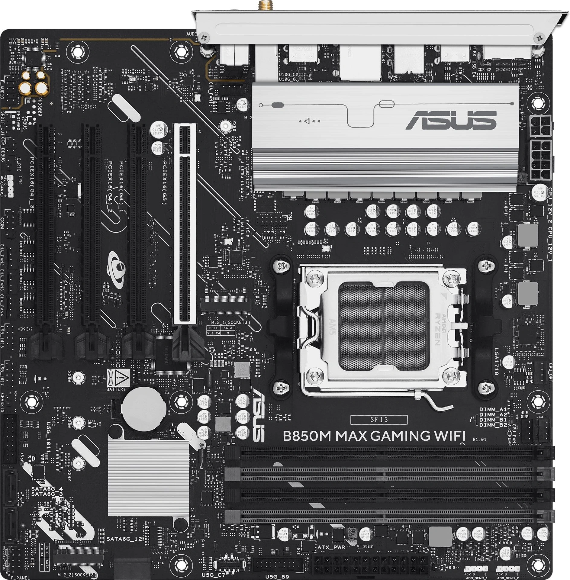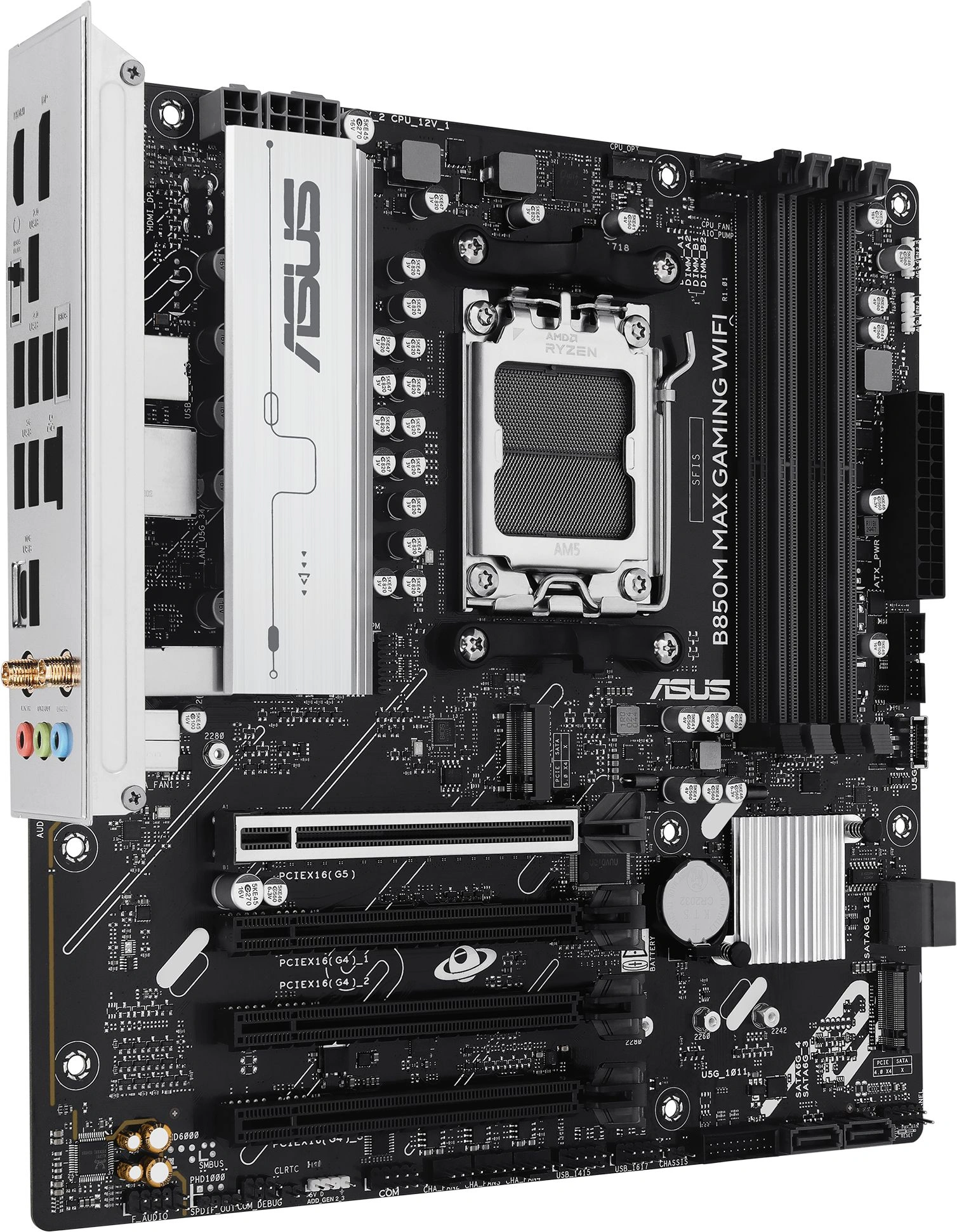 Материнская плата Asus B850M MAX GAMING WIFI SocketAM5 AMD B850 4xDDR5 mATX AC97 8ch(7.1) GbLAN RAID+HDMI+DP