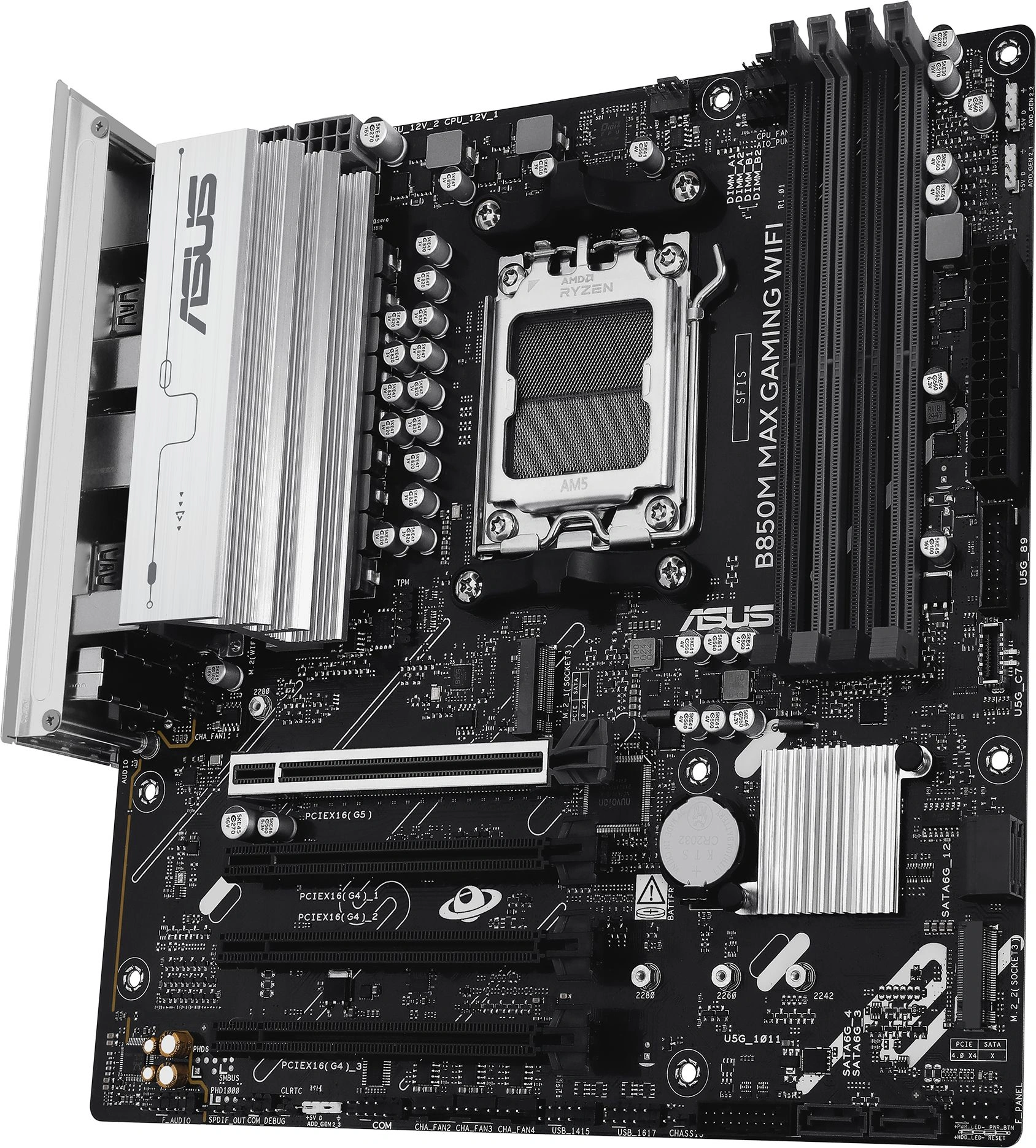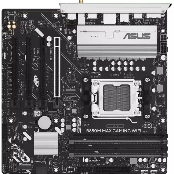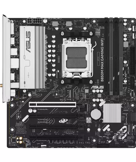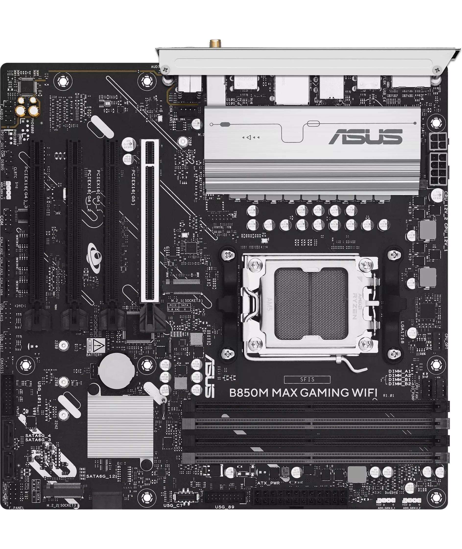 Материнская плата Asus B850M MAX GAMING WIFI SocketAM5 AMD B850 4xDDR5 mATX AC97 8ch(7.1) GbLAN RAID+HDMI+DP