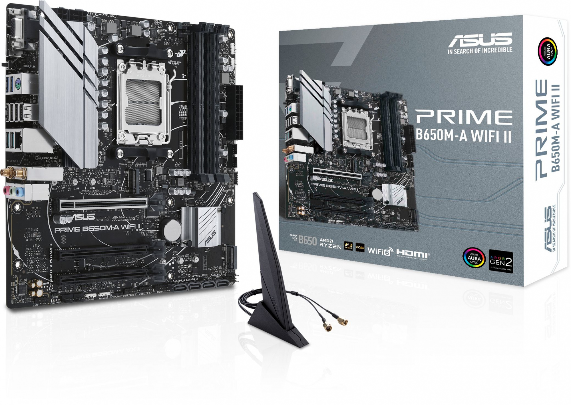 Материнская плата Asus PRIME B650M-A WIFI II AM5 4xDDR5 mATX AC97 8ch(7.1) 2.5Gg RAID+VGA+HDMI+DP