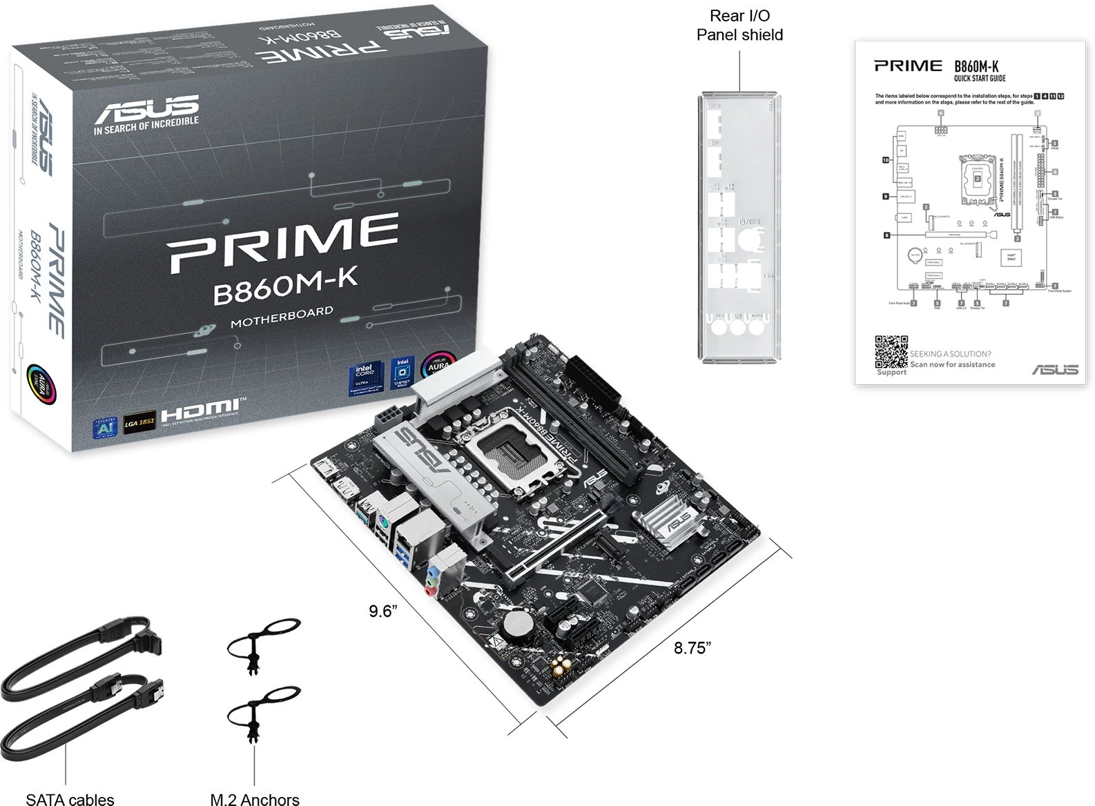 Материнская плата Asus PRIME B860M-K Soc-1851 Intel B860 2xDDR5 mATX AC97 8ch(7.1) 2.5Gg RAID+HDMI+DP