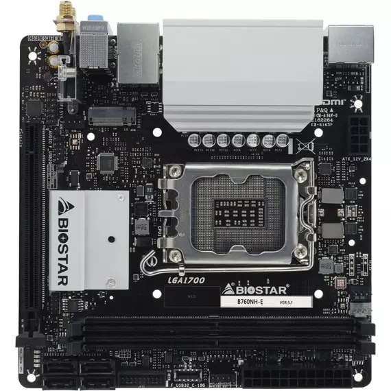 Материнская плата BioStar B760NH-E Soc-1700 Intel B760 2xDDR5 mini-ITX AC`97 8ch(7.1) 2.5Gg RAID+HDMI+DP
