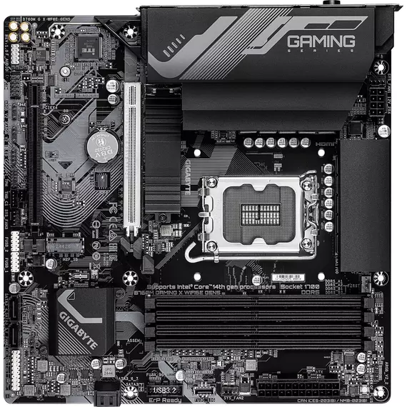 Материнская плата GigaByte B760M G X WF6E GEN5 Soc-1700 Intel B760 4xDDR5 mATX AC97 8ch(7.1) 2.5Gg RAID+HDMI+DP