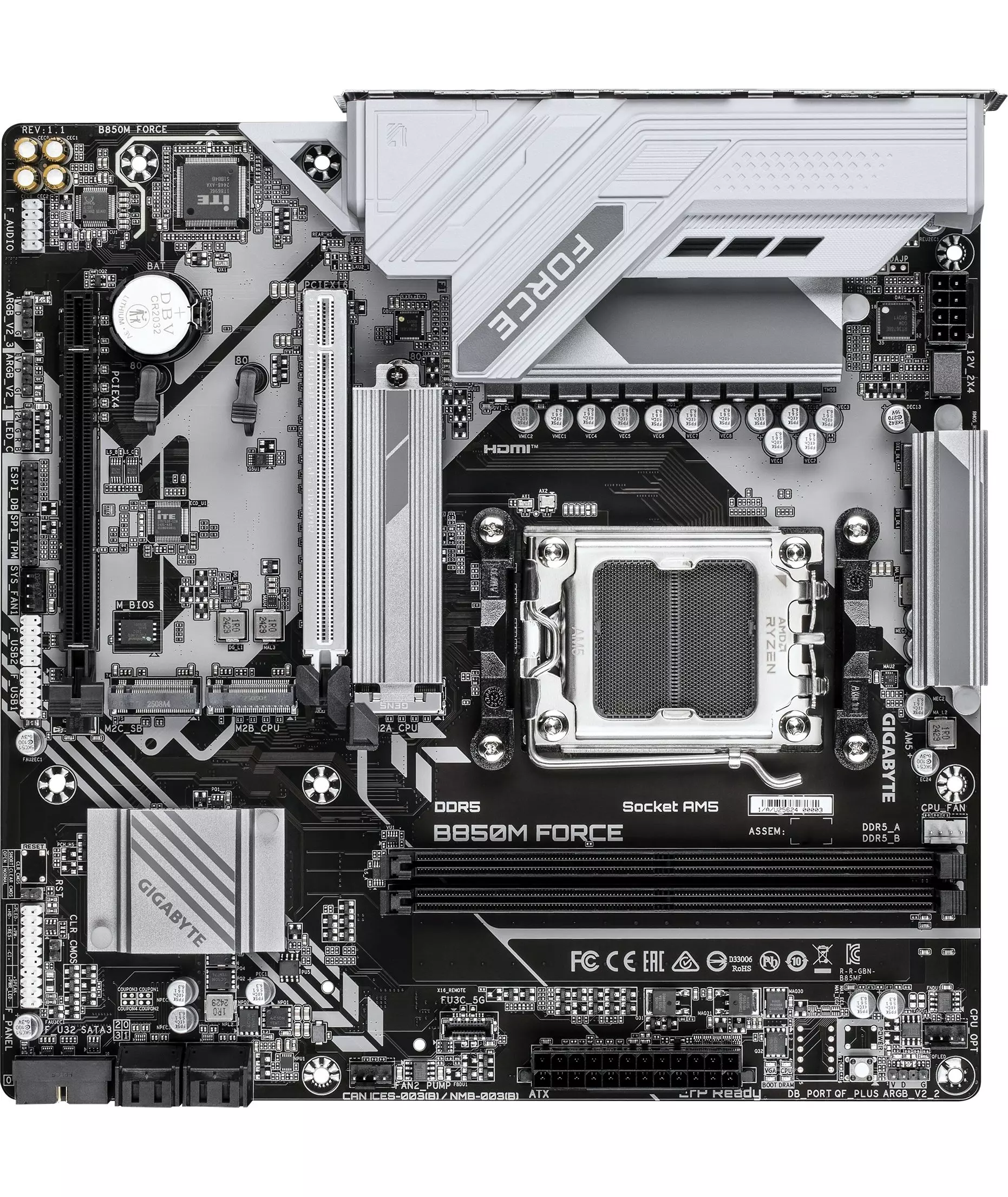 Материнская плата GigaByte B850M FORCE SocketAM5 AMD B850 2xDDR5 mATX AC97 8ch(7.1) 2.5Gg RAID+HDMI+DP
