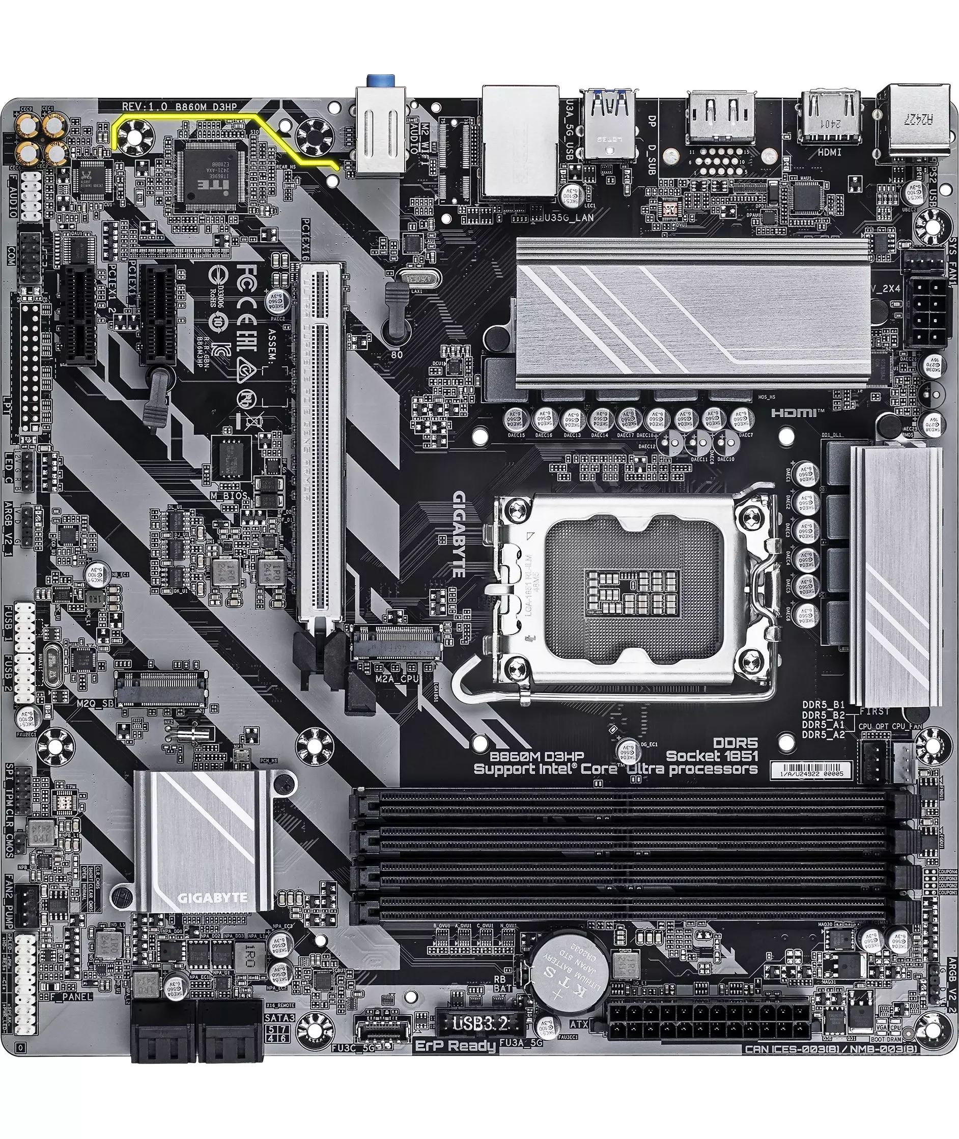 Материнская плата GigaByte B860M D3HP Soc-1851 Intel B860 4xDDR5 mATX AC97 8ch(7.1) GbLAN RAID+HDMI+DP