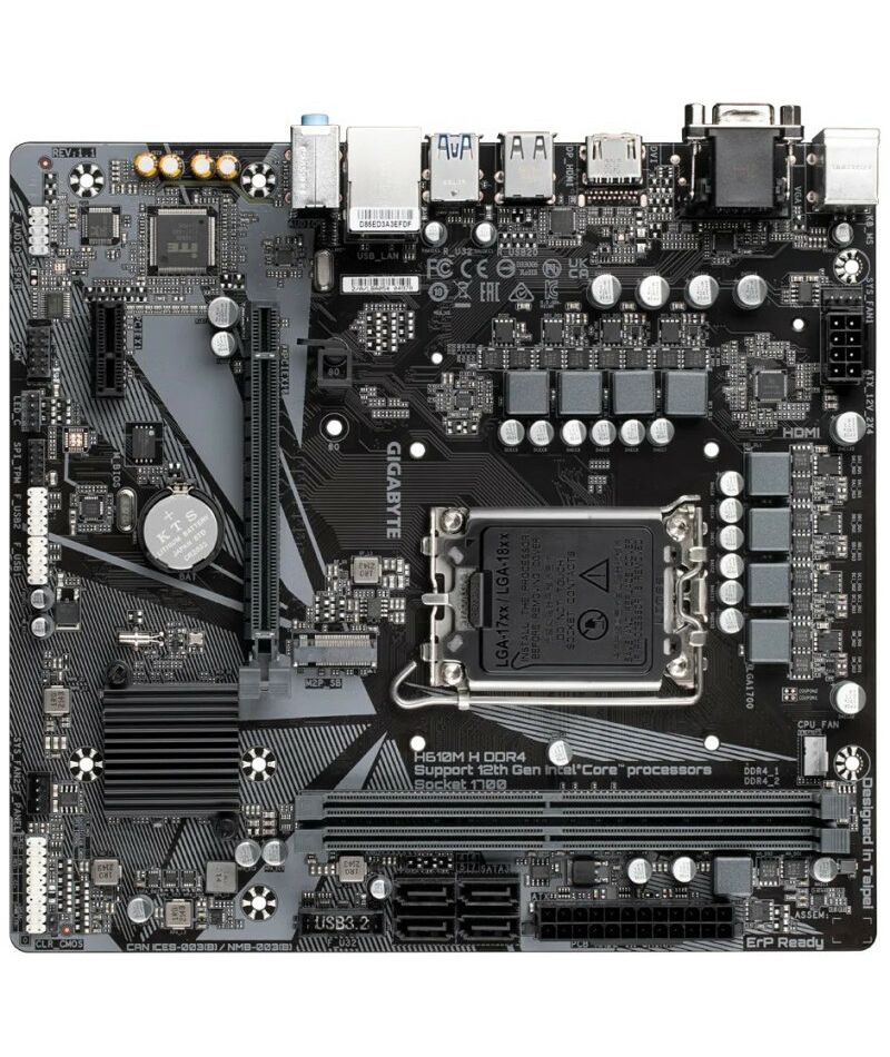 Материнская плата GigaByte H610M H LGA1700 PCI-E Dsub+HDMI GbLAN SATA MicroATX 2DDR4 RTL