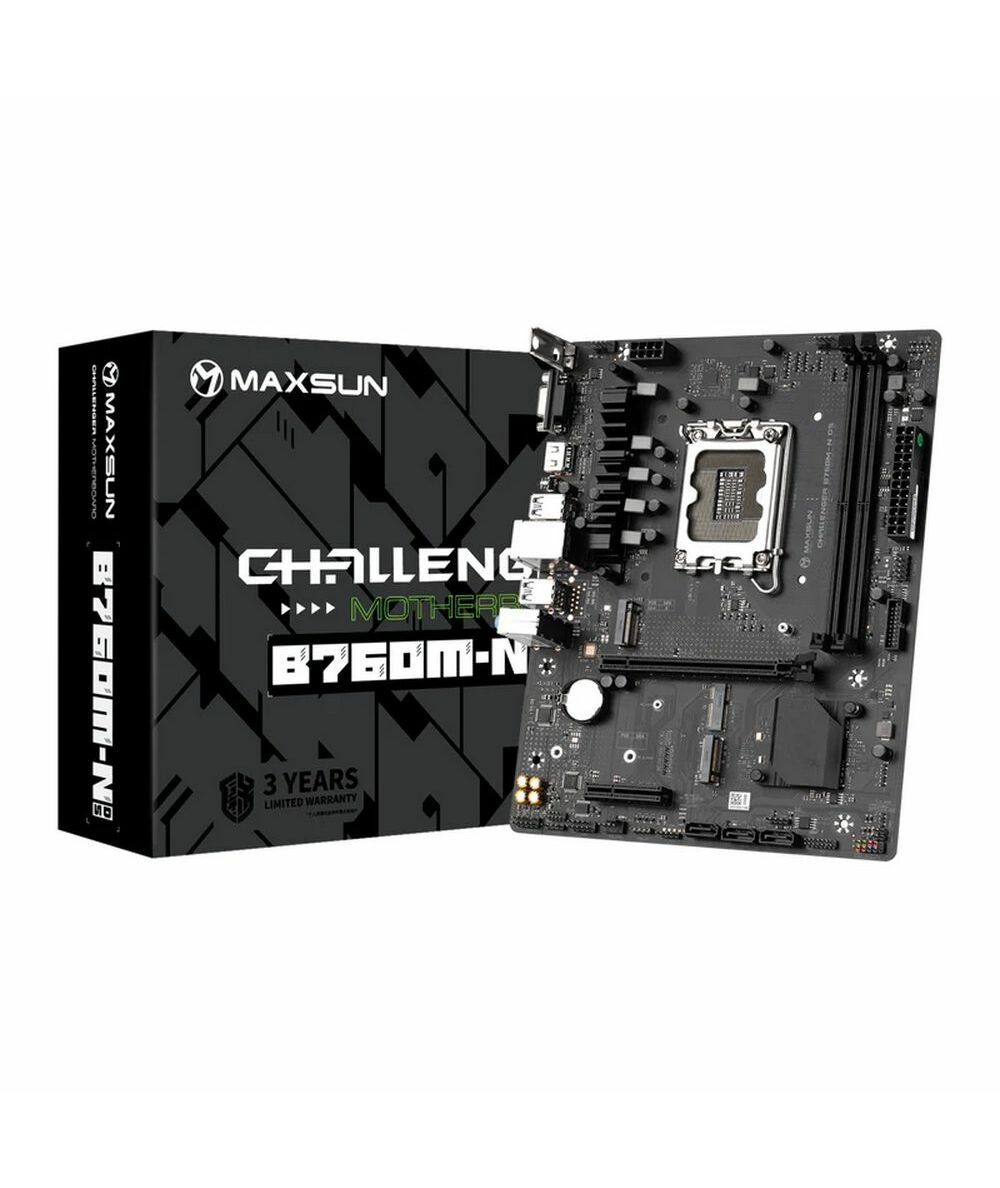 Материнская плата Maxsun MS-Challenger B760M-N D5 B760, 2xDDR5, 1xPCIEx16 1xPCIEx4, 2xM.2, Front2xUSB3, 4xUSB2, Rear4xUSB3, 2xUSB2, 3xSATA3, 1GLan, VGA+HDMI, mATX, RTL