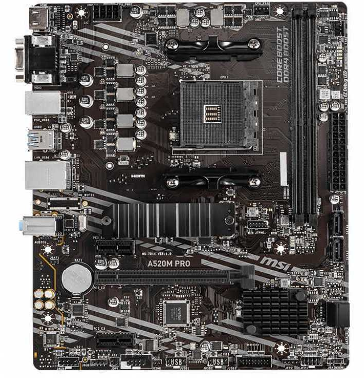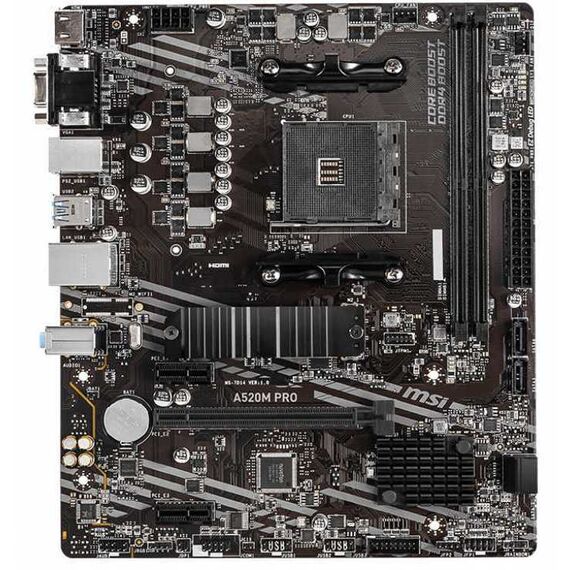 Материнская плата MSI A520M PRO AM4 AMD A520 2xDDR4 mATX AC97 8ch(7.1) GbLAN RAID+VGA+HDMI+DP
