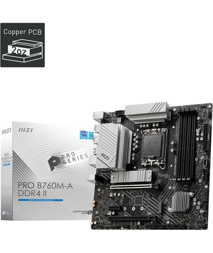 Материнская плата MSI PRO B760M-A DDR4 II Soc-1700 B760 4xDDR4 mATX AC`97 8ch(7.1) 2.5Gg+HDMI+DP