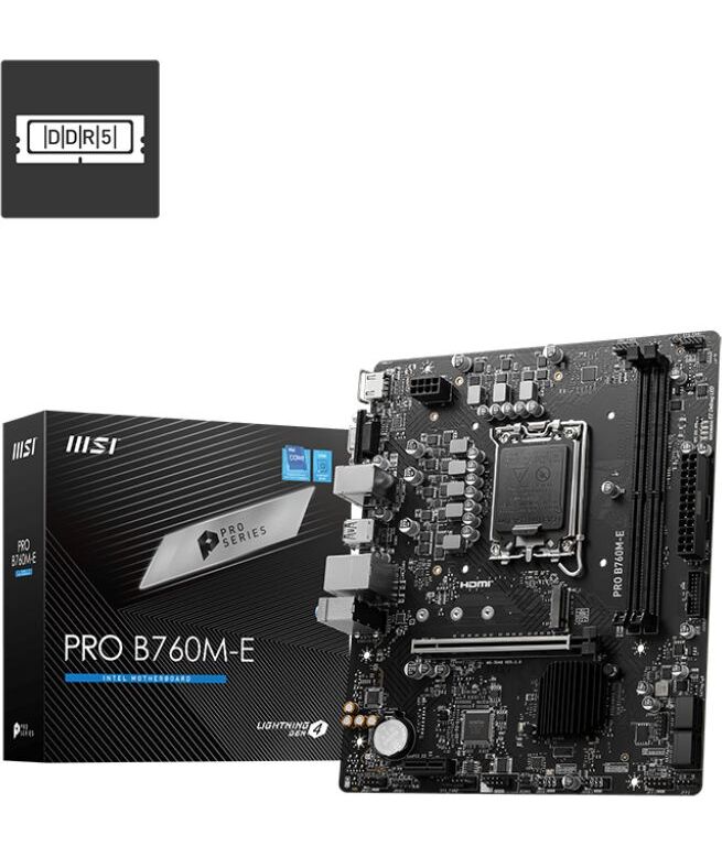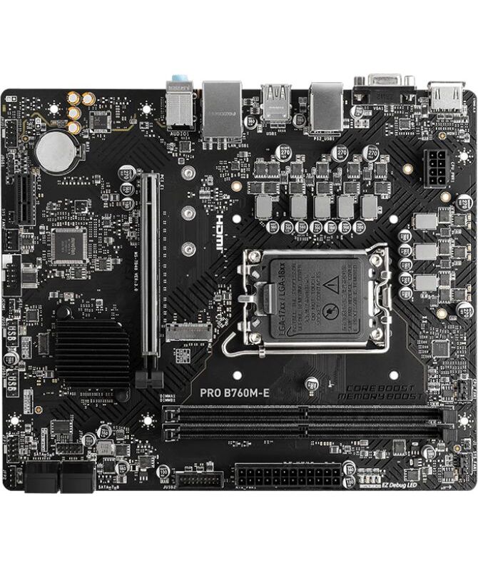 Материнская плата MSI PRO B760M-E LGA1700 Intel B760 2xDDR5 mATX AC97 8ch(7.1) GbLAN+VGA+HDMI