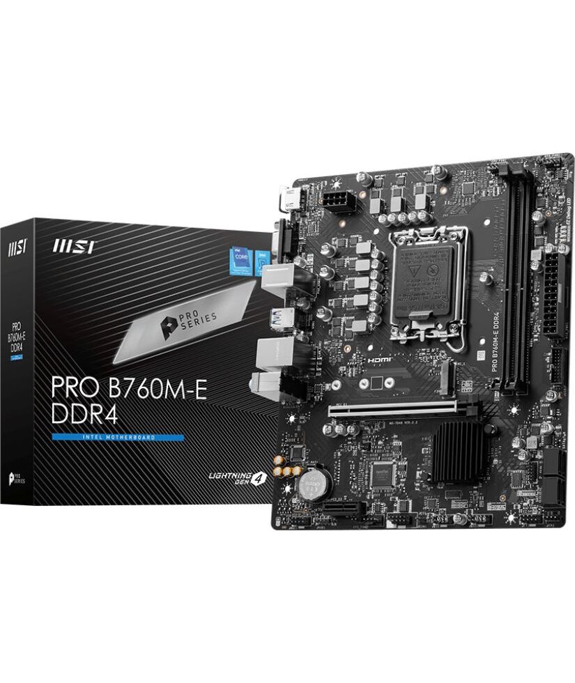 Материнская плата MSI PRO B760M-E DDR4 LGA1700 Intel B760 2xDDR4 mATX AC97 8ch(7.1) GbLAN+VGA+HDMI