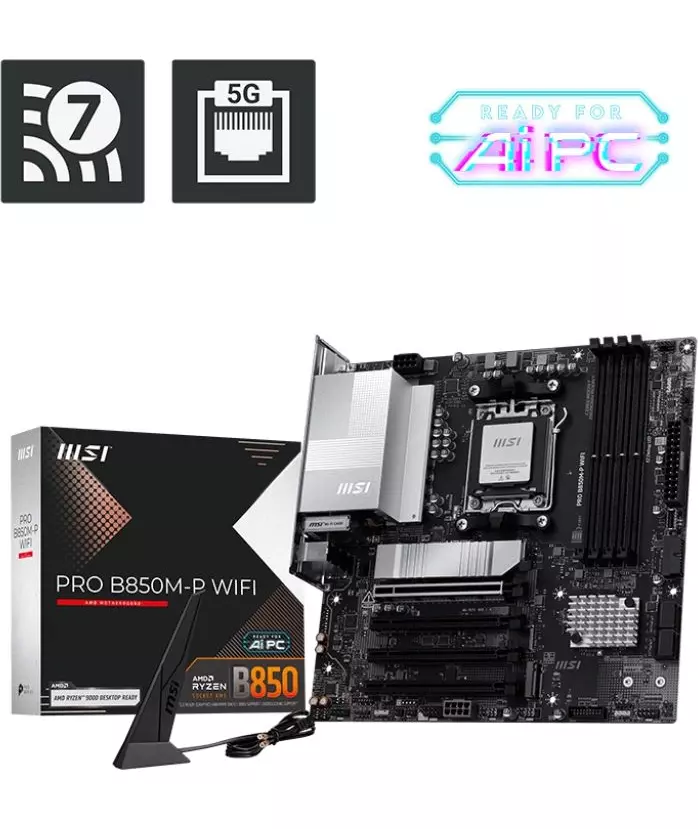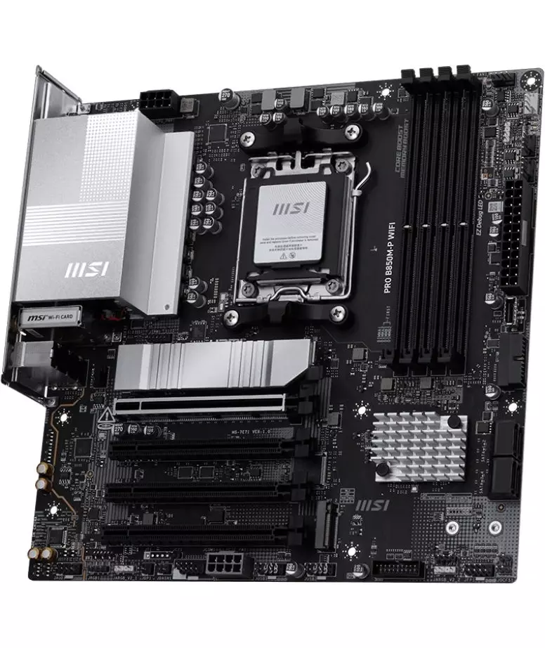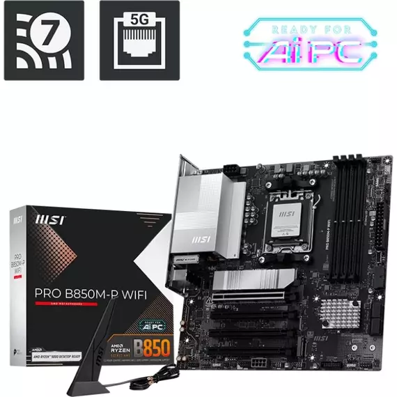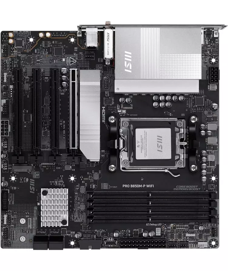 Материнская плата MSI PRO B850M-P WIFI SocketAM5 AMD B850 4xDDR5 mATX AC`97 8ch(7.1) 5Gigabit RAID+HDMI+DP