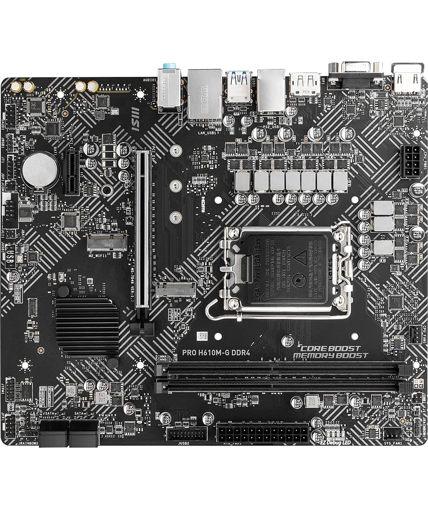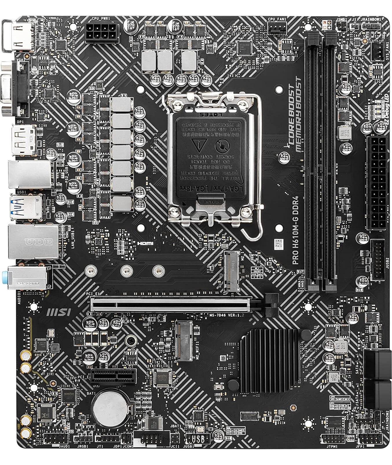 Материнская плата MSI PRO H610M-G DDR4 LGA1700 Intel H610 2xDDR4 mATX AC97 8ch(7.1) GbLAN+VGA+HDMI+DP