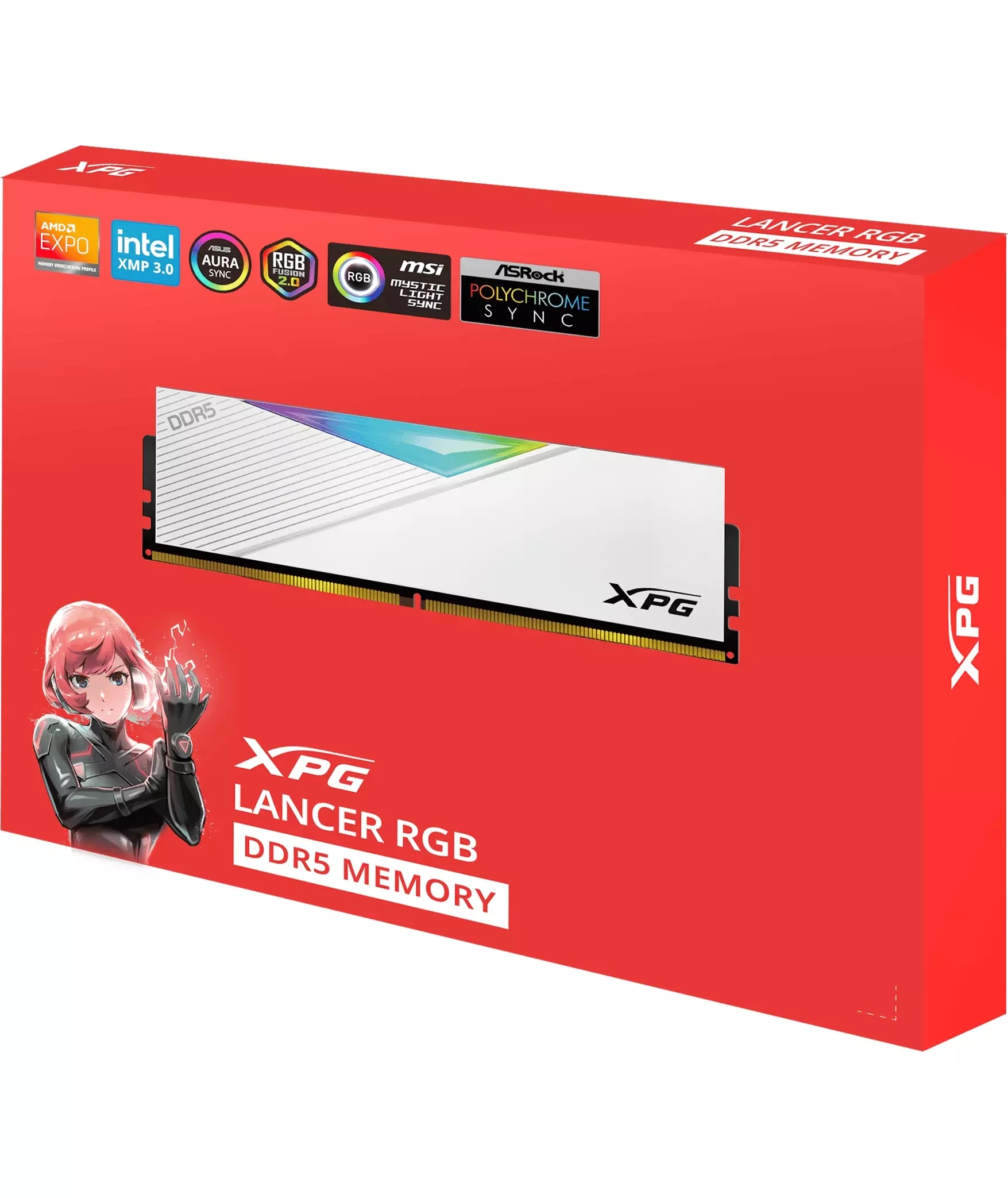 Память AData 2x16GB XPG Lancer DDR5 6000MHz RGB Gaming PC5-48000 CL30 DIMM 288-pin 1.35В kit single rank с радиатором RTL [AX5U6000C3016G-DCLARWH]