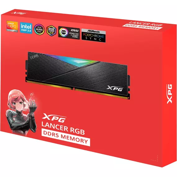 Память AData 2x16GB XPG Lancer DDR5 6400MHz RGB Gaming PC5-51200 CL32 DIMM 288-pin 1.35В kit dual rank с радиатором RTL [AX5U6400C3216G-DCLARBK]