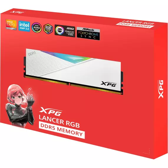 Память AData 2x16GB XPG Lancer DDR5 6400MHz RGB Gaming PC5-51200 CL32 DIMM 288-pin 1.35В kit dual rank с радиатором RTL [AX5U6400C3216G-DCLARWH]