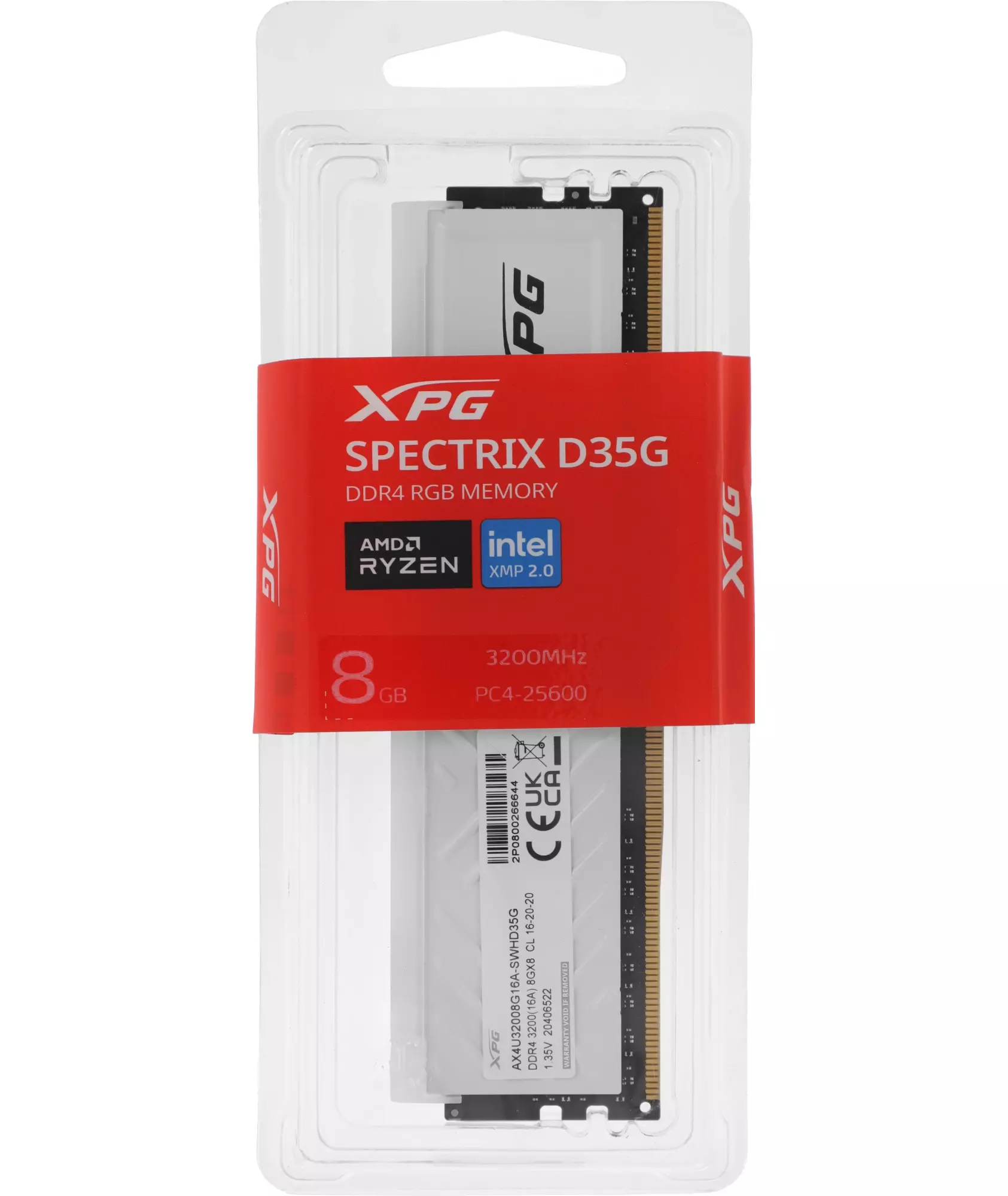 Память AData 8GB XPG Spectrix D35G DDR4 3200MHz RGB Gaming PC4-25600 CL16 DIMM 288-pin 1.35В dual rank с радиатором RTL [AX4U32008G16A-SWHD35G]