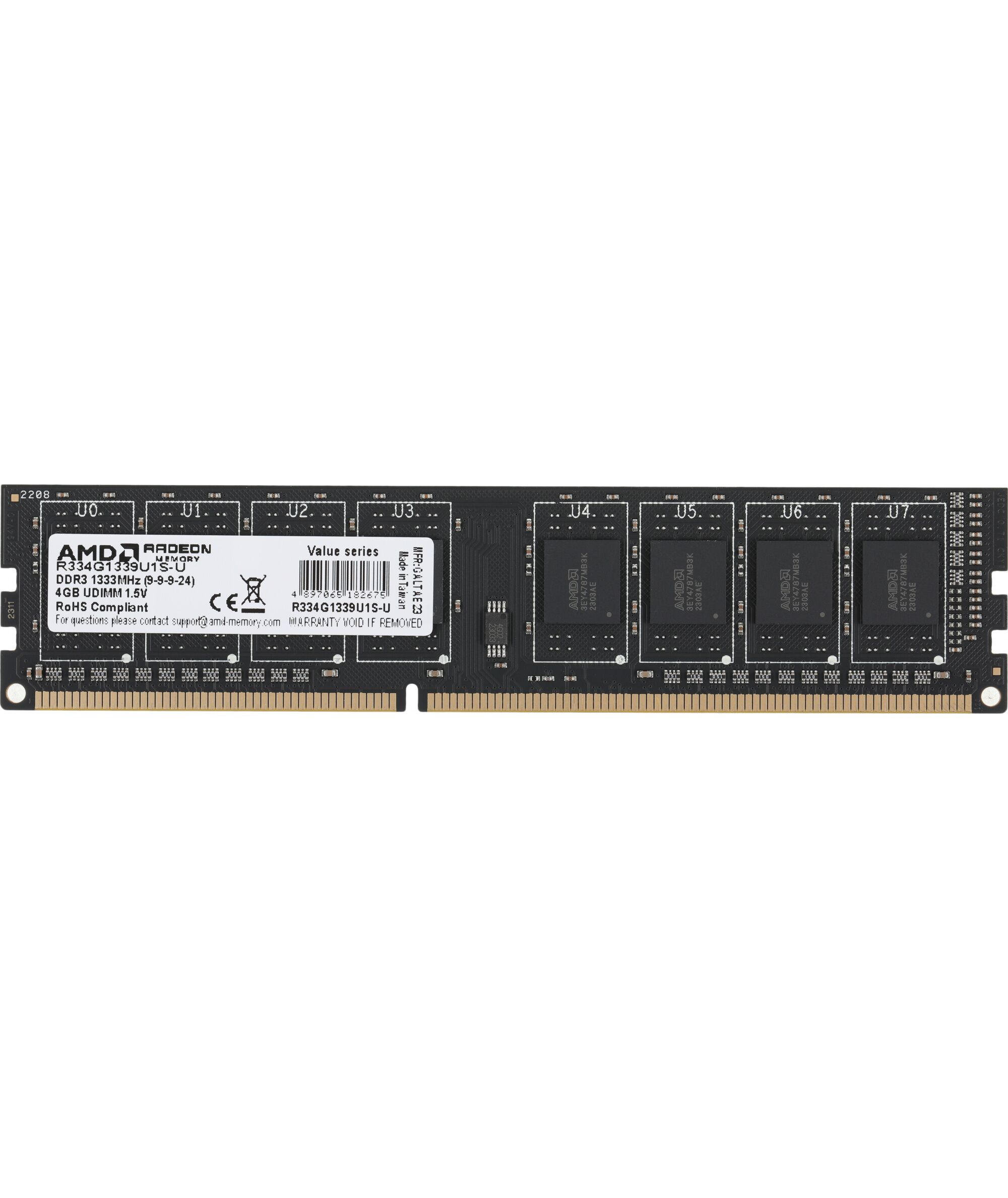 Память AMD 4Gb R3 Value DDR3 1333MHz PC3-10600 CL9 DIMM 240-pin 1.5В RTL [R334G1339U1S-U]