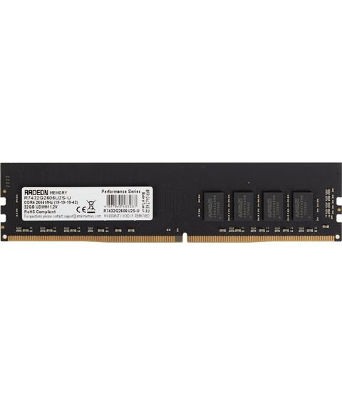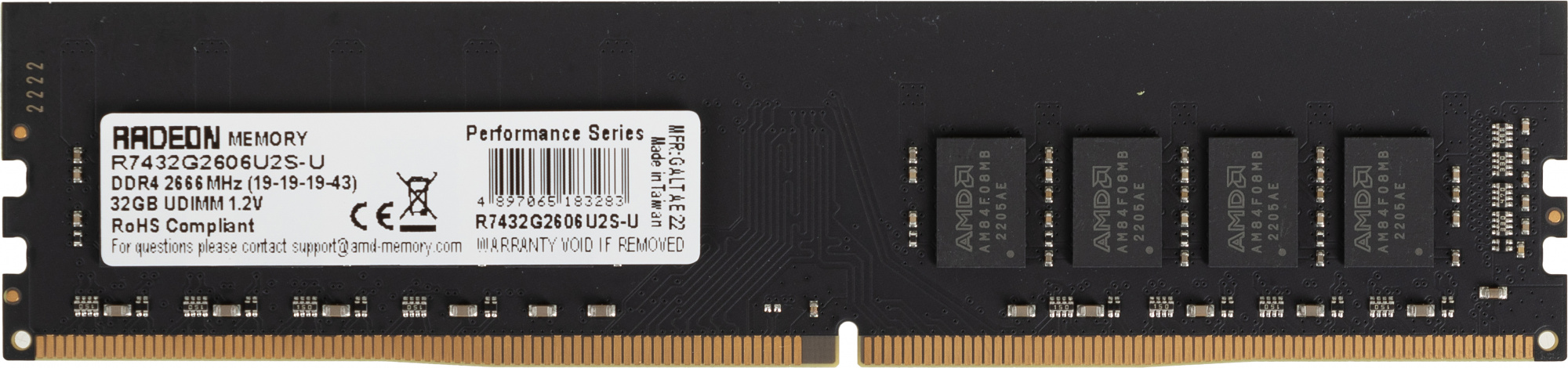 Оперативная память AMD Radeon R7 Performance Series 32Gb DDR4 2666MHz PC4-21300 CL19 DIMM 288-pin 1.2В dual rank RTL [R7432G2606U2S-U]