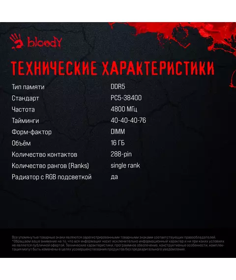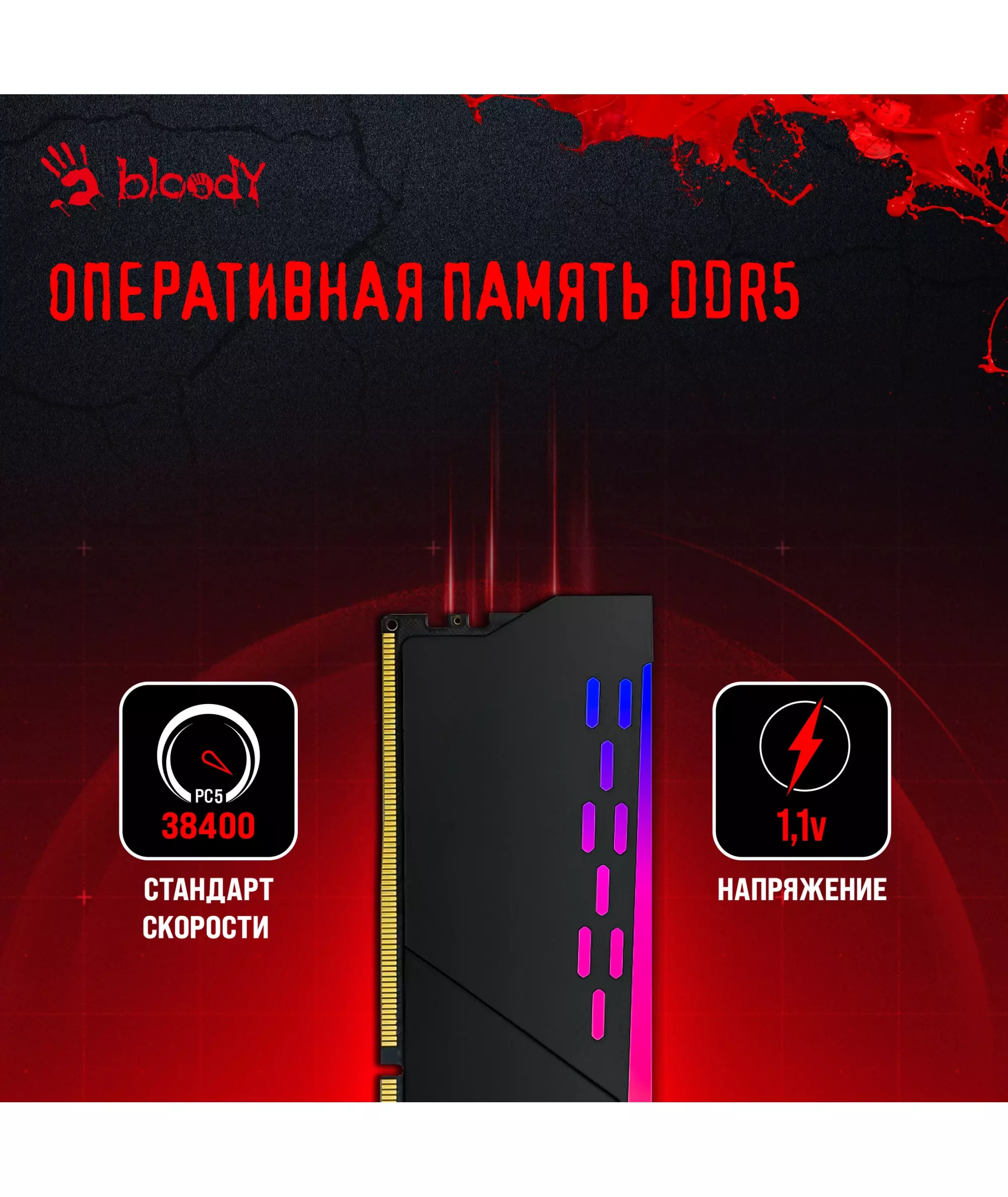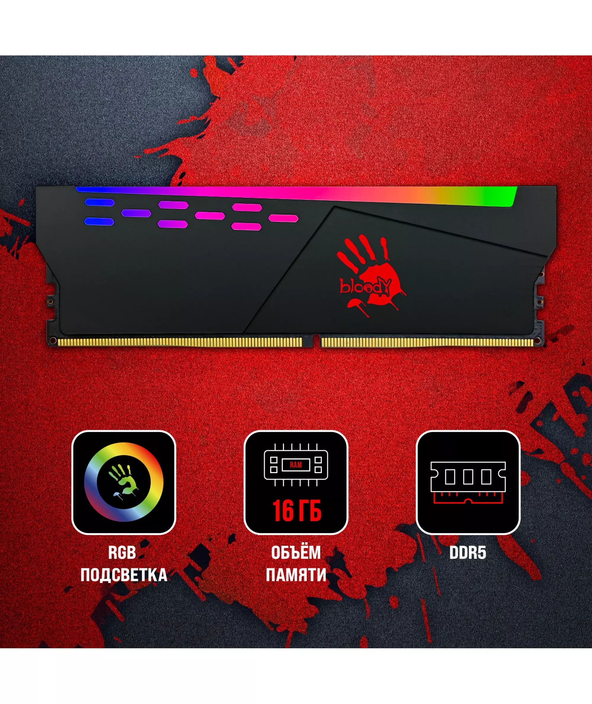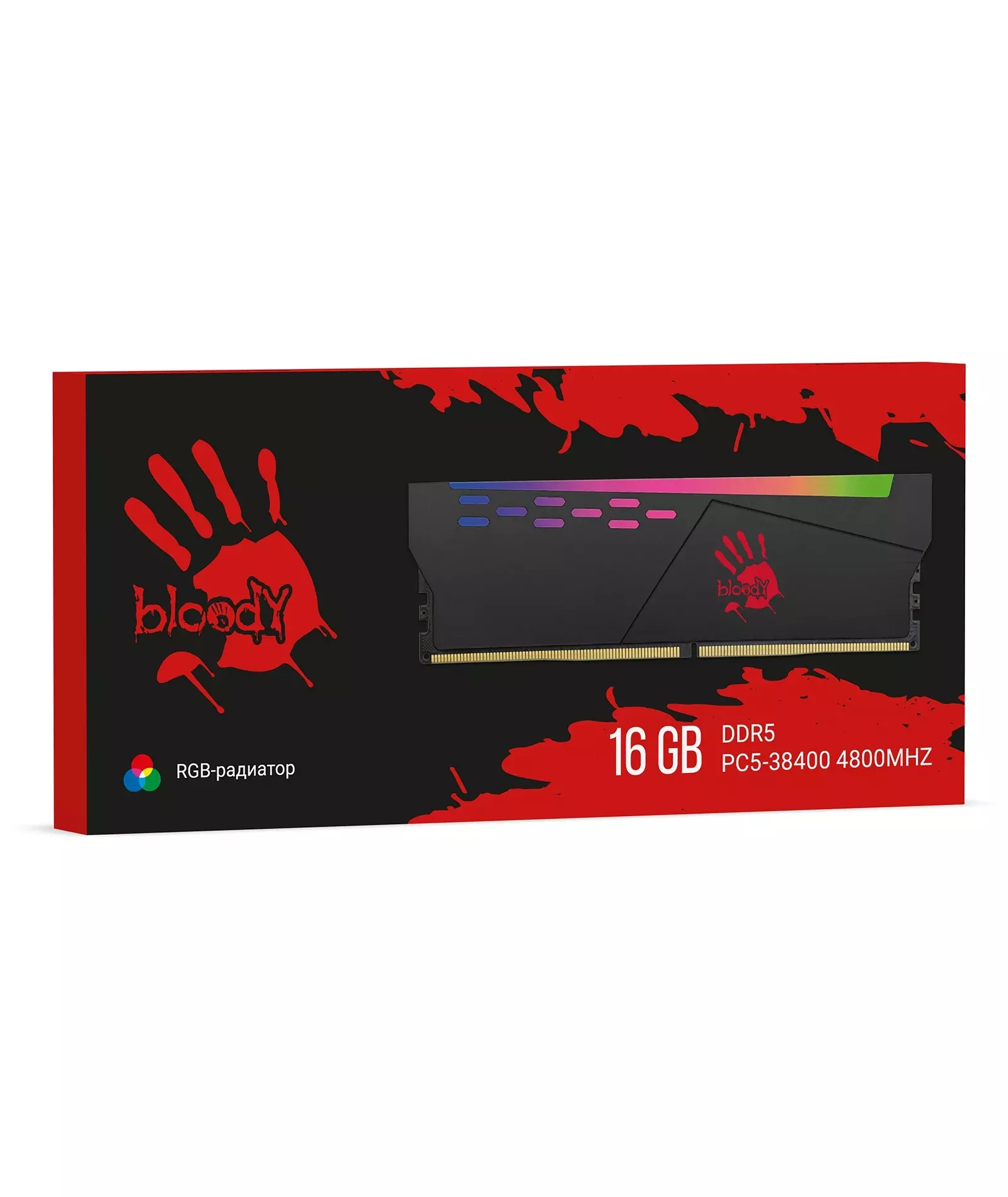 Память Bloody 16GB RGB Gaming DDR5 4800MHz PC5-38400 CL40 DIMM 288-pin 1.1В single rank с радиатором RTL [BDM016A4800RS]