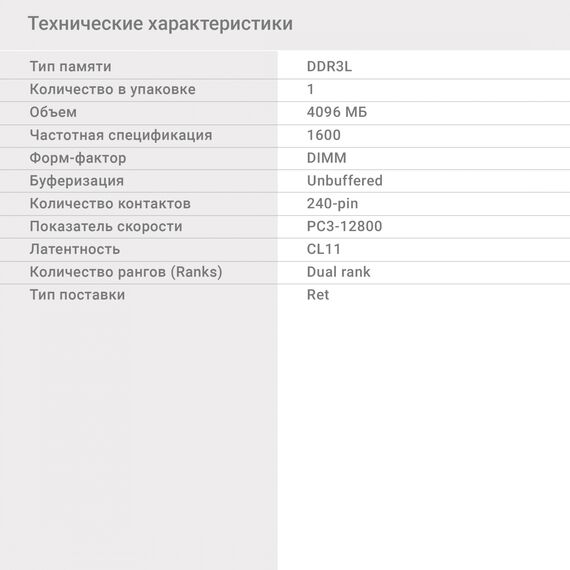 | Количество рангов (Ranks) | dual rank |
