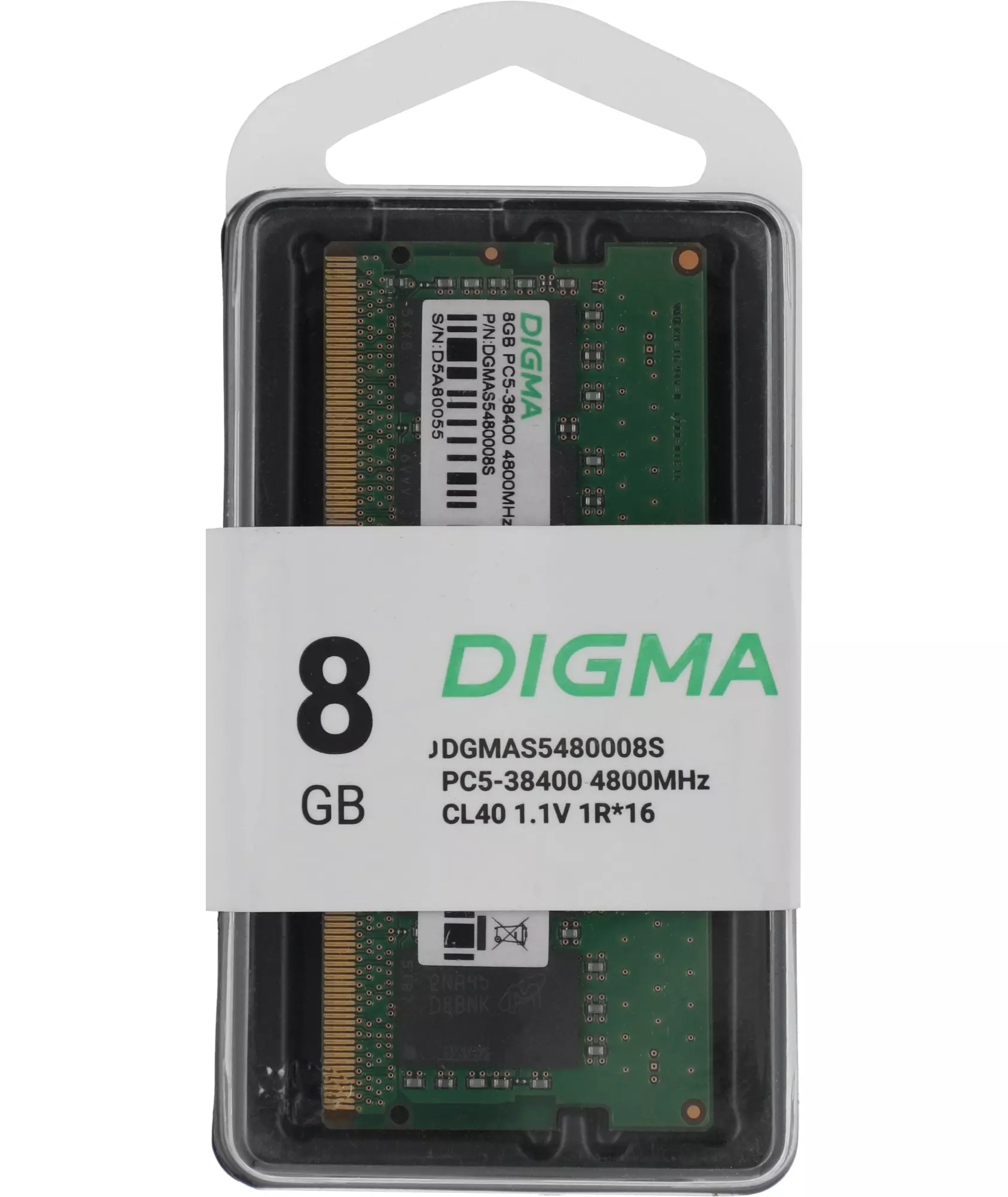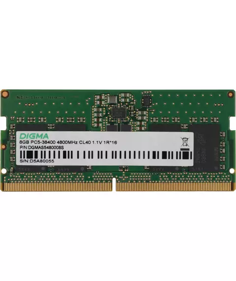 Память Digma 8GB DDR5 4800MHz PC5-38400 CL40 SO-DIMM 262-pin 1.1В single rank RTL [DGMAS5480008S]