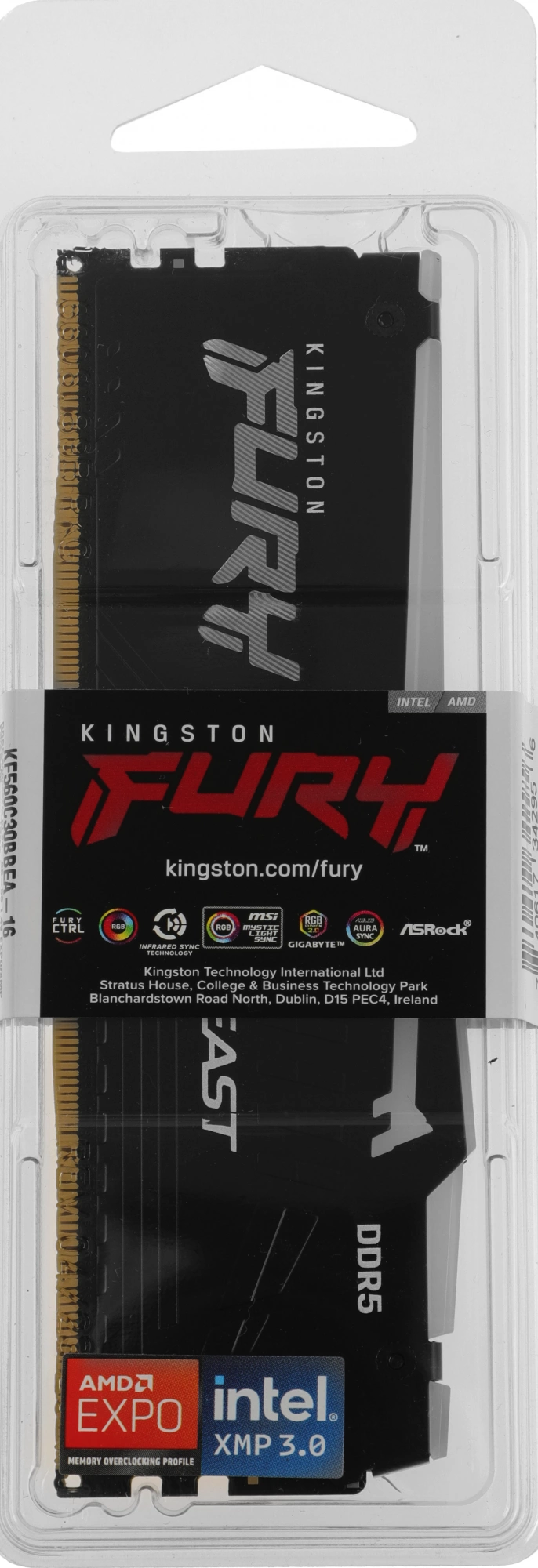Память Kingston 16GB Fury Beast Black Expo RGB DDR5 6000MHz Gaming PC5-48000 CL30 DIMM 288-pin 1.4В kit single rank с радиатором RTL [KF560C30BBEA-16]