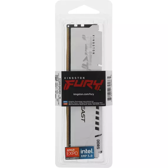 Память Kingston 16GB Fury Beast White Expo DDR5 6000MHz Expo PC5-48000 CL36 DIMM 288-pin 1.35В dual rank с радиатором RTL [KF560C36BWE2-16]