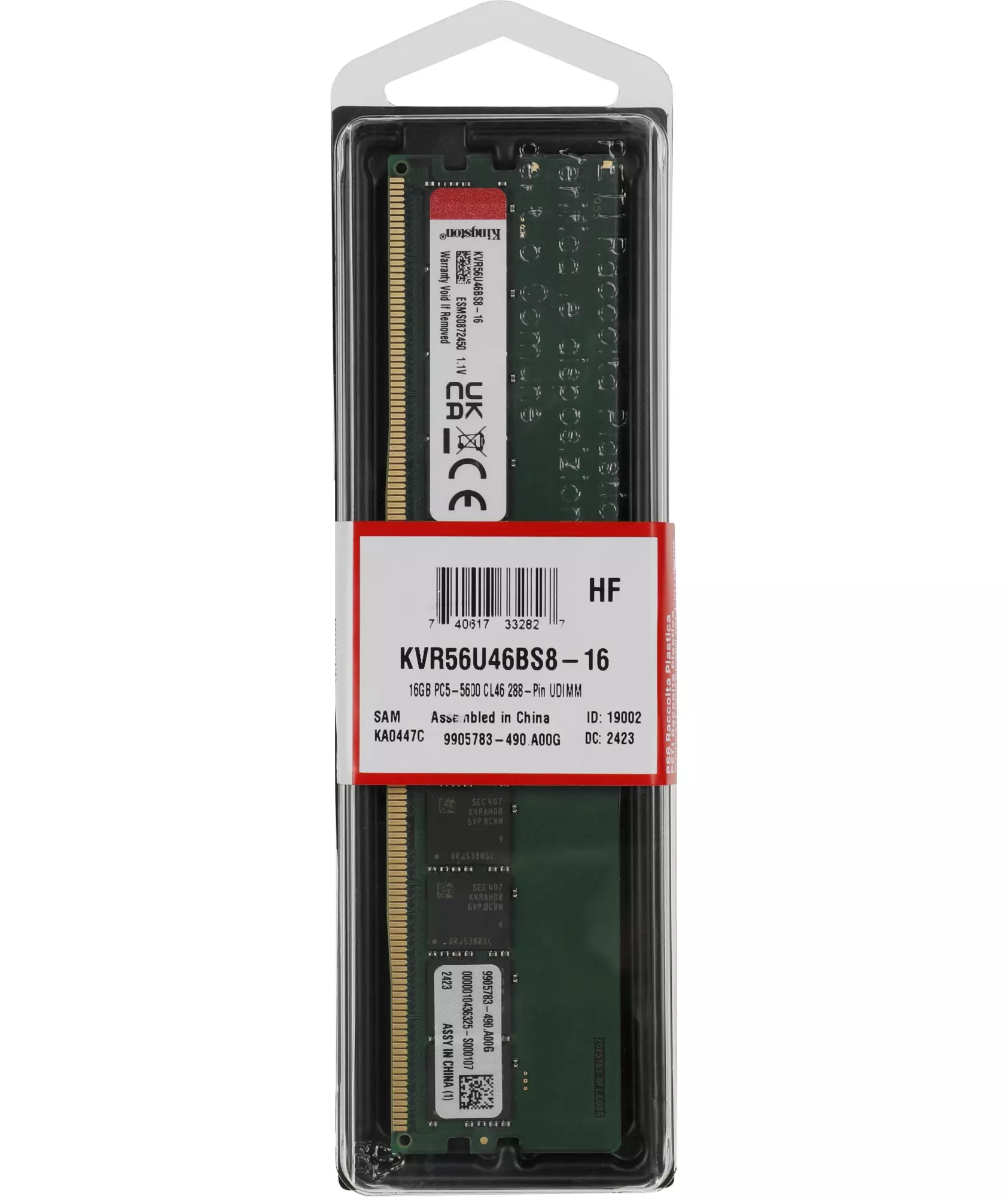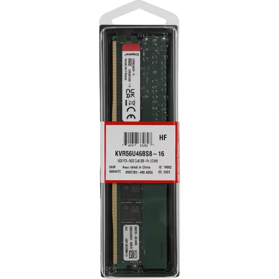 Память Kingston 16GB Valueram DDR5 5600MHz PC5-44800 CL46 DIMM 288-pin 1.1В single rank RTL [KVR56U46BS8-16]