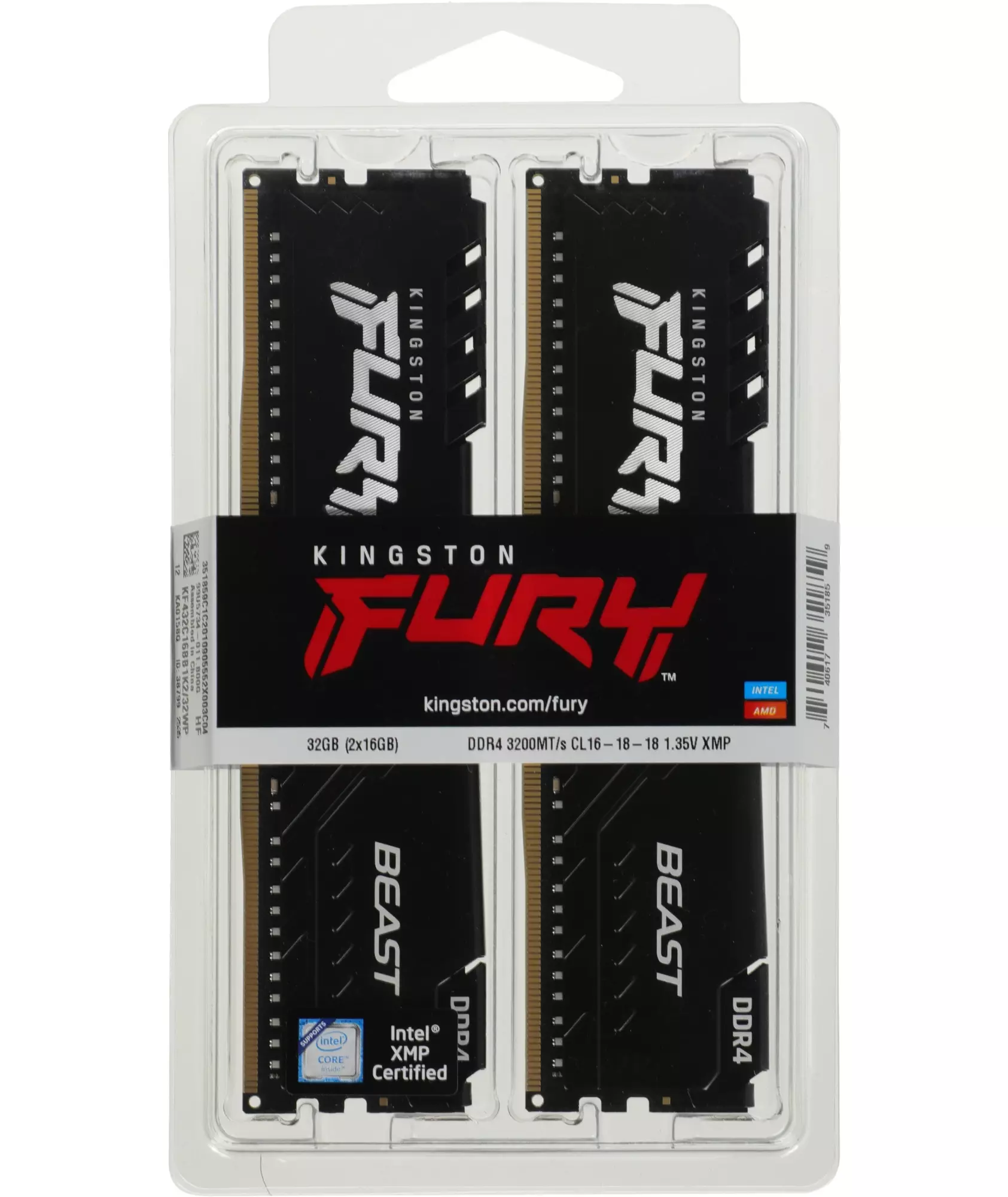 Память Kingston 2x16GB Fury Beast Black DDR4 3200MHz Gaming PC4-25600 CL16 DIMM 288-pin 1.35В dual rank с радиатором RTL [KF432C16BB1K2/32WP]
