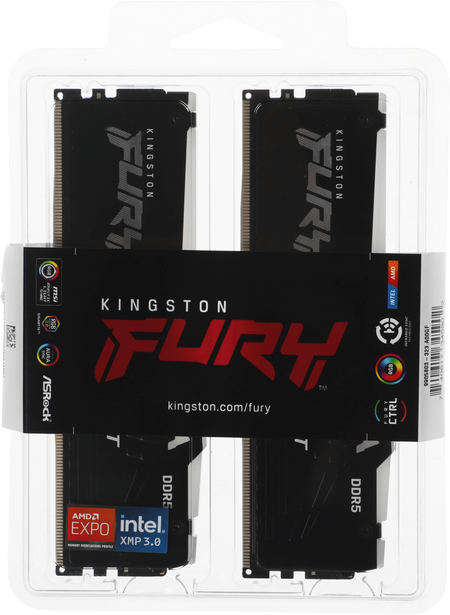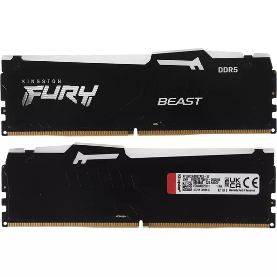 Память Kingston 2x16GB Fury Beast DDR5 6000MHz RGB Gaming PC5-48000 CL36 DIMM 288-pin 1.35В single rank с радиатором RTL [KF560C36BBE2AK2-32]
