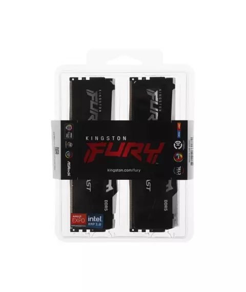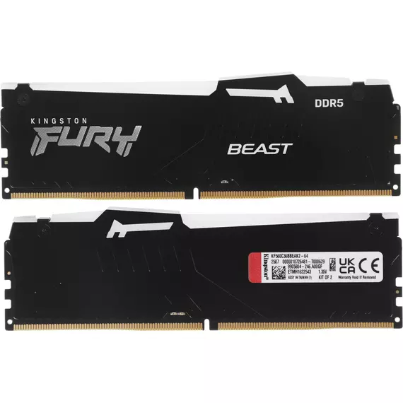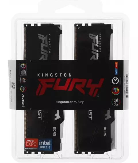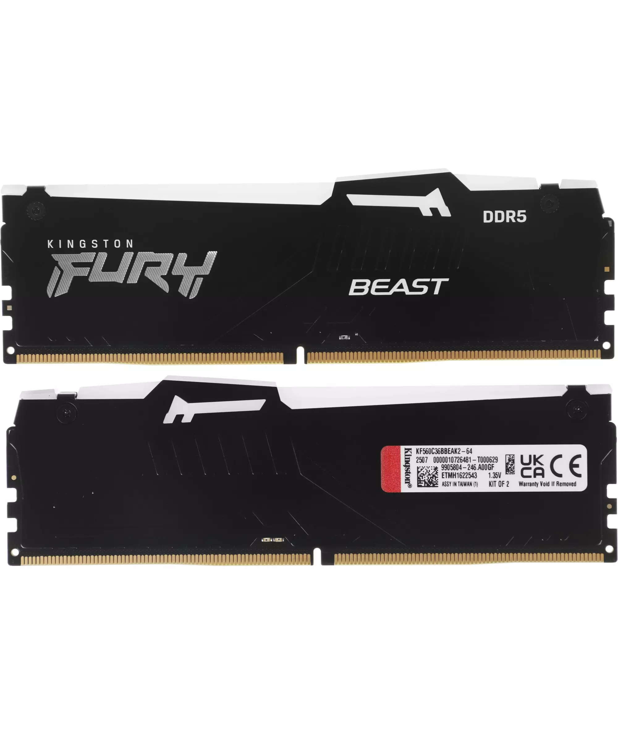 Память Kingston 2x32GB Fury Beast Black DDR5 6000MHz RGB Gaming PC5-48000 CL36 DIMM 288-pin 1.35В kit single rank с радиатором RTL [KF560C36BBEAK2-64]