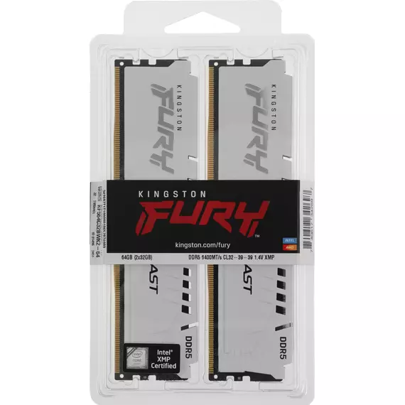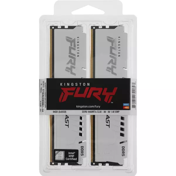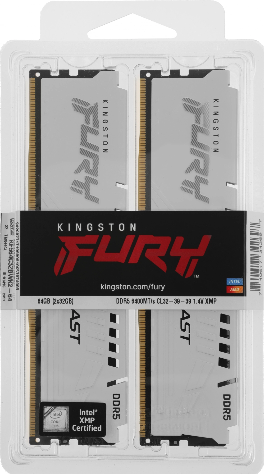 Память Kingston 2x32GB Fury Beast DDR5 6400MHz Gaming PC5-51200 CL32 DIMM 288-pin 1.4В kit dual rank с радиатором RTL [KF564C32BWK2-64]