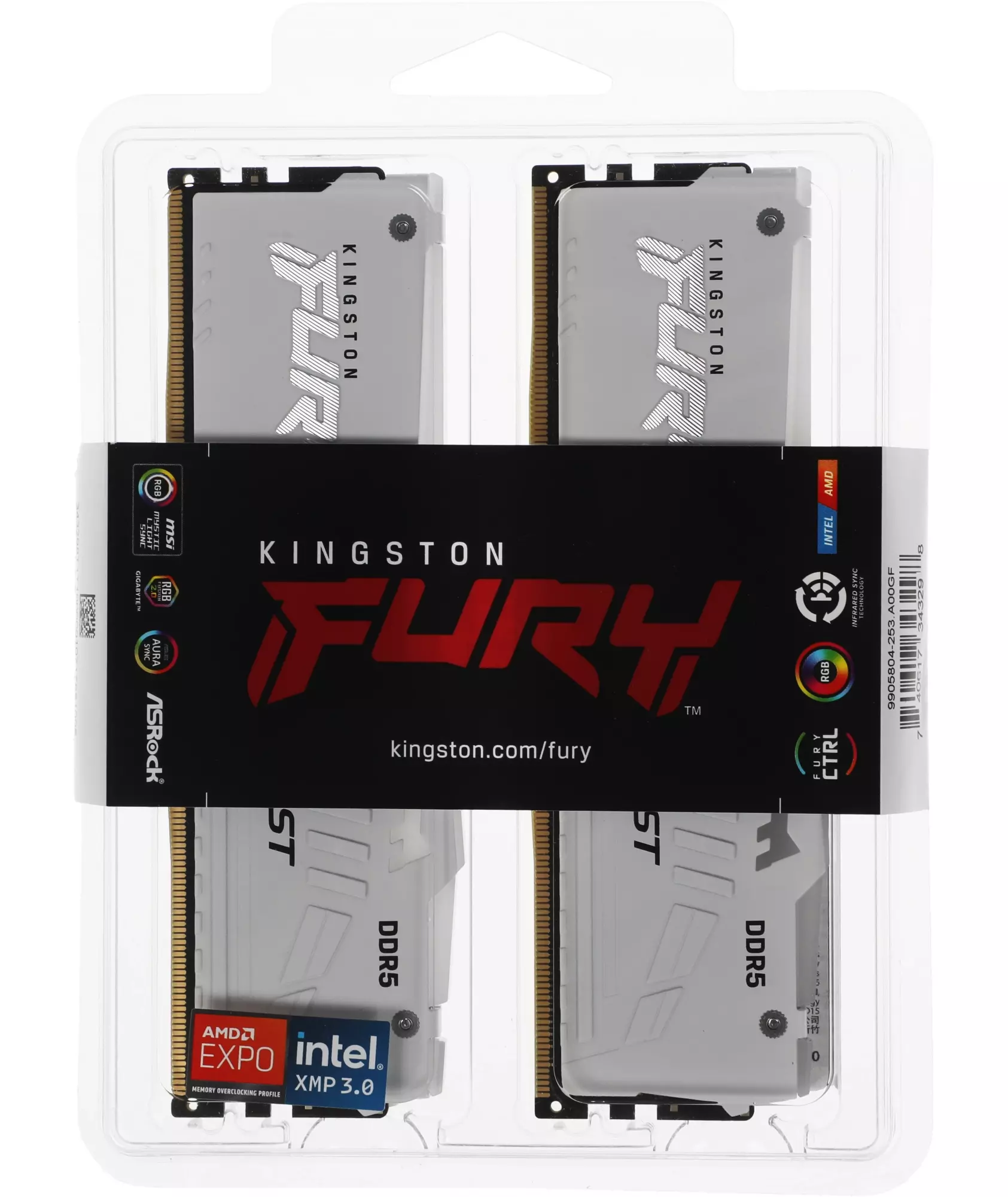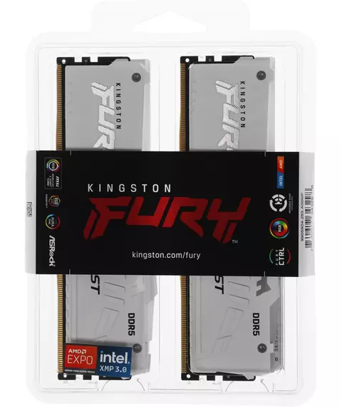 Память Kingston 2x32GB Fury Beast RGB DDR5 6000MHz Gaming PC5-48000 CL30 DIMM 288-pin 1.4В kit single rank с радиатором RTL [KF560C30BWEAK2-64]