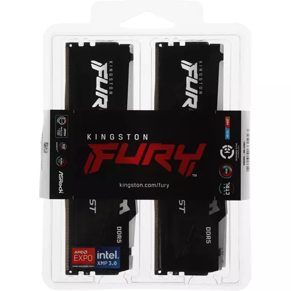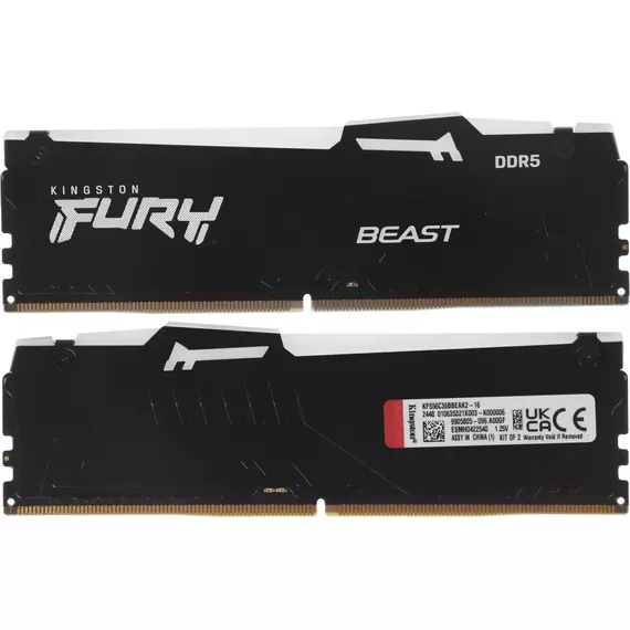 Память Kingston 2x8GB Fury Beast Black DDR5 5600MHz RGB Gaming PC5-44800 CL36 DIMM 288-pin 1.25В kit single rank с радиатором RTL [KF556C36BBEAK2-16]