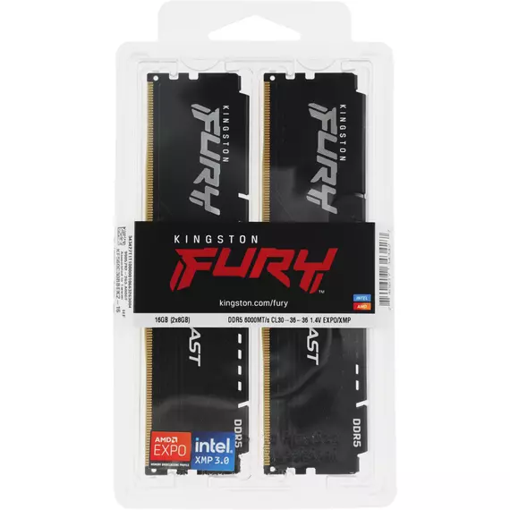 Память Kingston 2x8GB DDR5 6000MHz Gaming PC5-48000 CL30 DIMM 288-pin 1.4В kit single rank с радиатором RTL [KF560C30BBEK2-16]