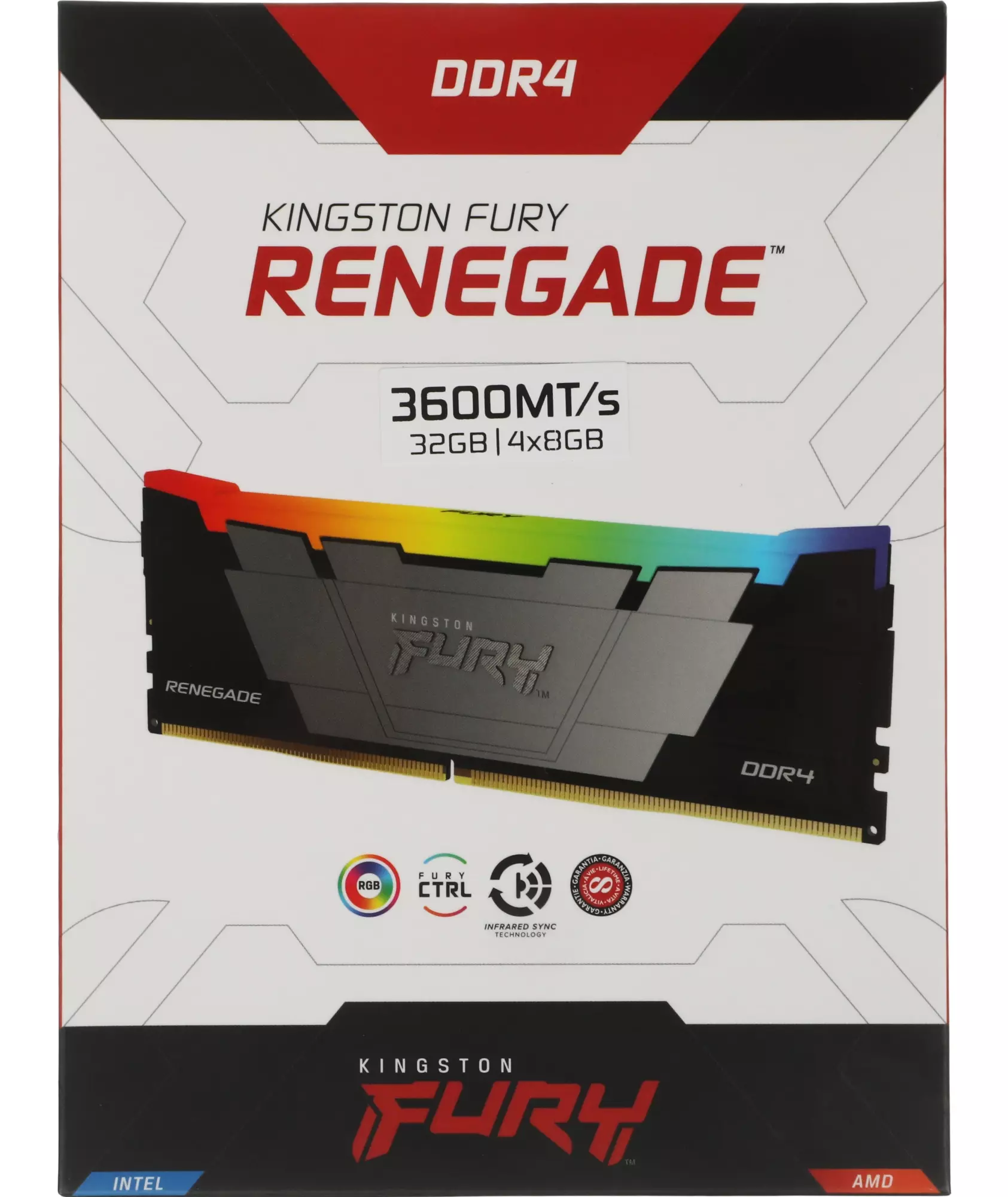 Память Kingston 4x8GB Fury Renegade RGB DDR4 3600MHz Gaming PC4-28800 CL16 DIMM 288-pin 1.35В single rank с радиатором RTL [KF436C16RB2AK4/32]