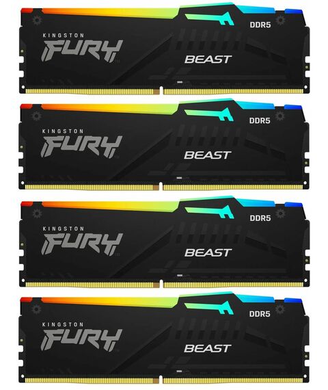 Память оперативная Kingston 64GB (Kit of 4) FURY Beast RGB XMP 5200MT/s DDR5 CL40 DIMM [KF552C40BBAK4-64]