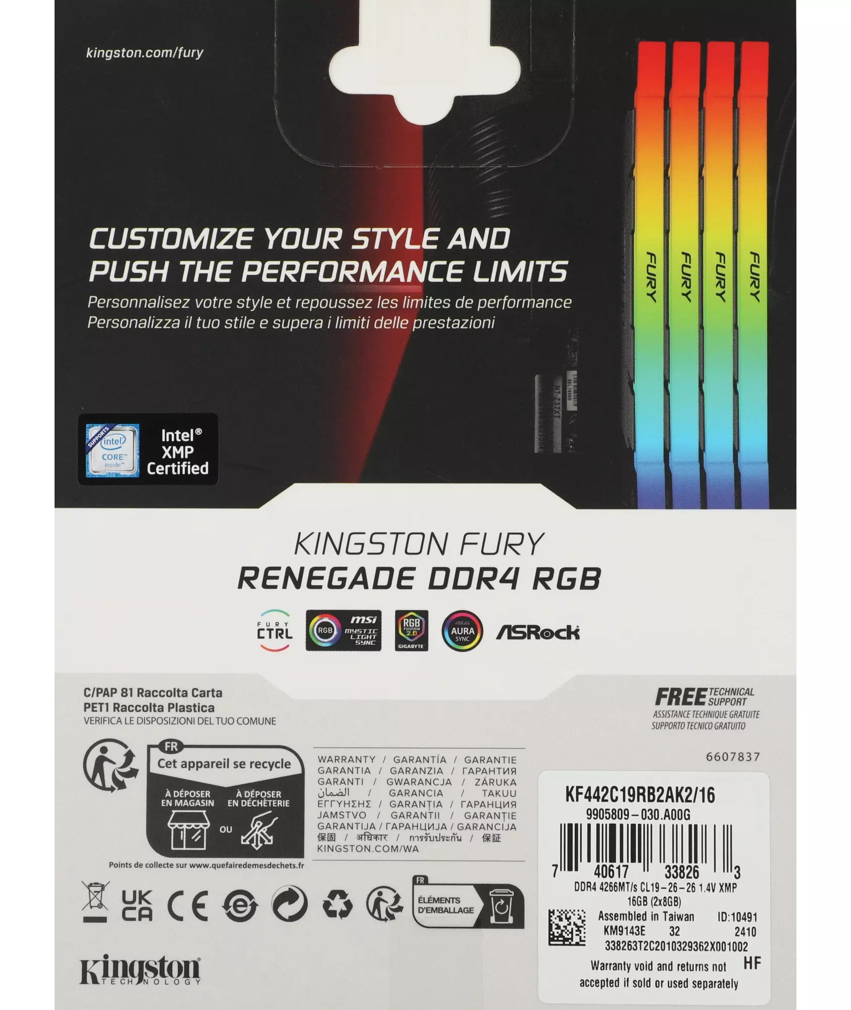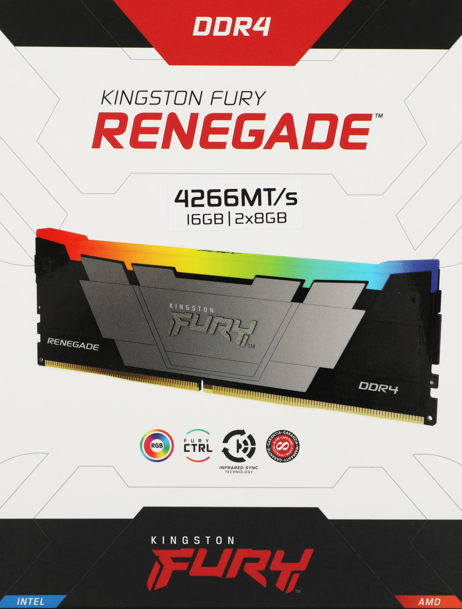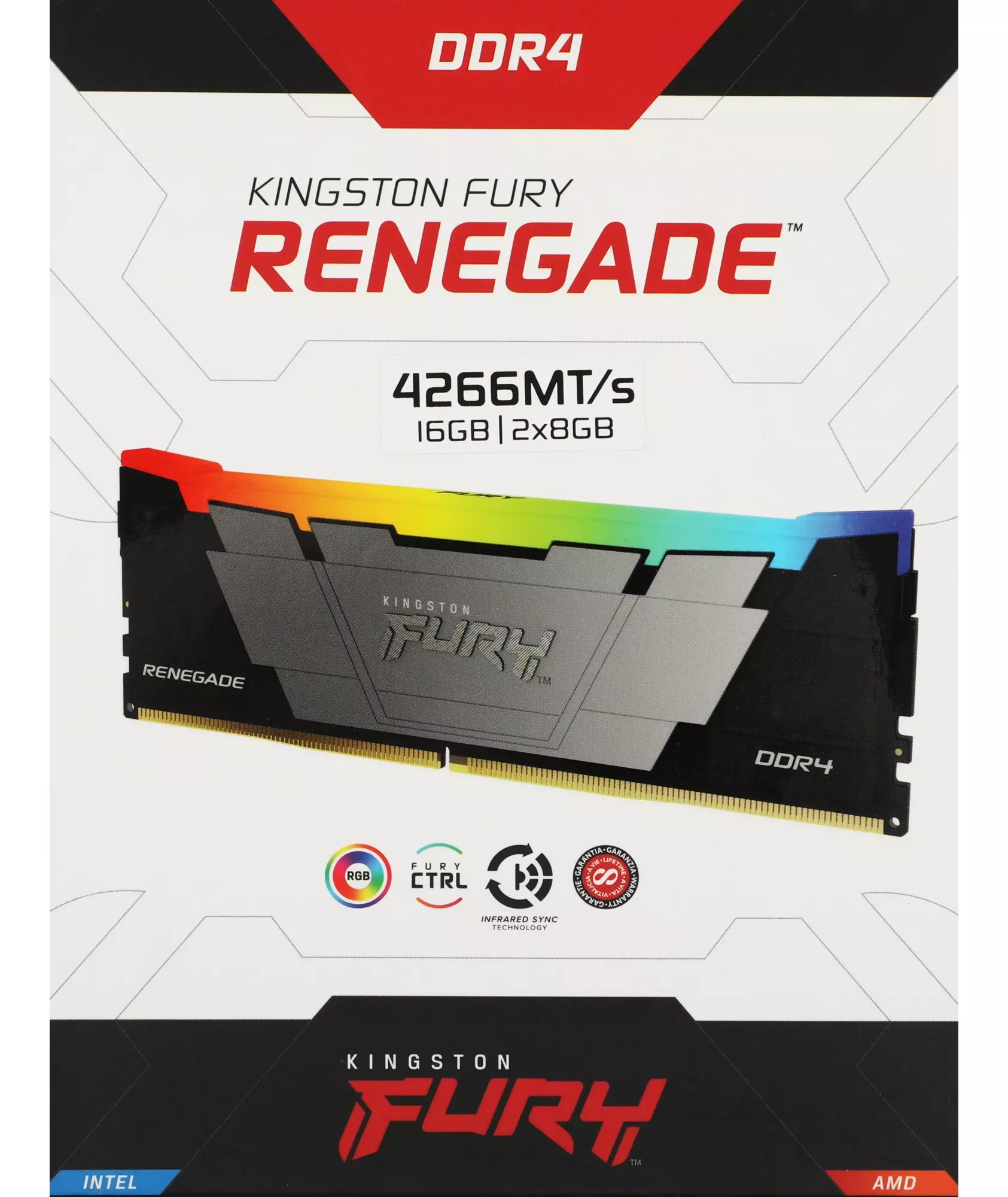 Память Kingston Fury Renegade RGB 2x8GB DDR4 4266MHz Gaming PC4-34100 CL19 DIMM 288-pin 1.4В kit single rank с радиатором RTL [KF442C19RB2AK2/16]