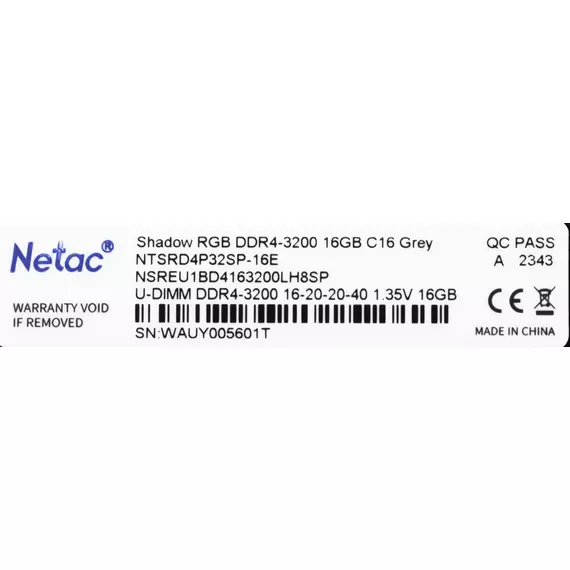Описание Netac 16GB Shadow RGB Gaming [NTSRD4P32SP-16E]