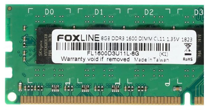 Оперативная память Foxline 8Gb DIMM DDR3 1600MHz CL11 1.35v [FL1600D3U11L-8G]