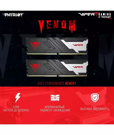 Оперативная память Patriot Viper Venom Gaming 64Gb Kit 2x32Gb DDR5 5200MHz PC5-41600 CL40 DIMM 288-pin 1.35В с радиатором RTL [PVV564G520C40K]