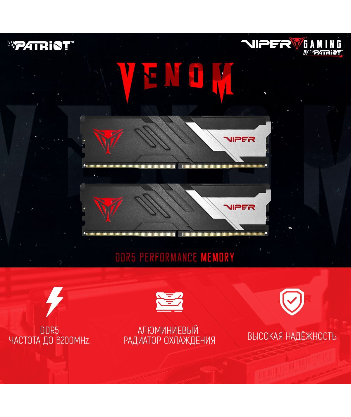 Описание Patriot Viper Venom Gaming 64Gb Kit 2x32Gb [PVV564G600C36K]