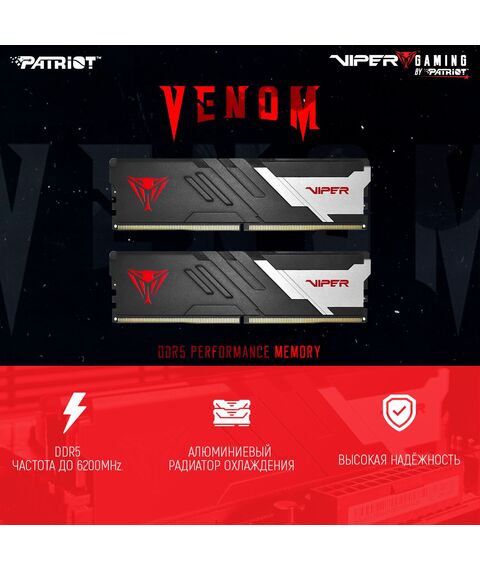 Оперативная память Patriot Viper Venom Gaming 64Gb Kit 2x32Gb DDR5 6000MHz PC5-48000 CL36 DIMM 288-pin 1.35В с радиатором RTL [PVV564G600C36K]
