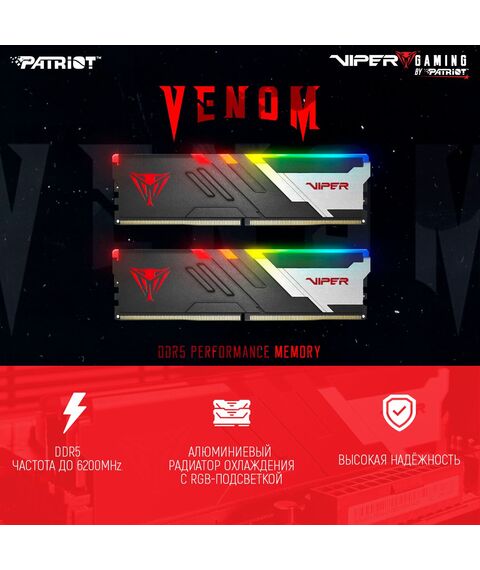 Оперативная память Patriot Viper Venom RGB Gaming 32Gb Kit 2x16Gb DDR5 6400MHz PC5-51200 CL32 DIMM 288-pin 1.4В kit с радиатором RTL [PVVR532G640C32K]