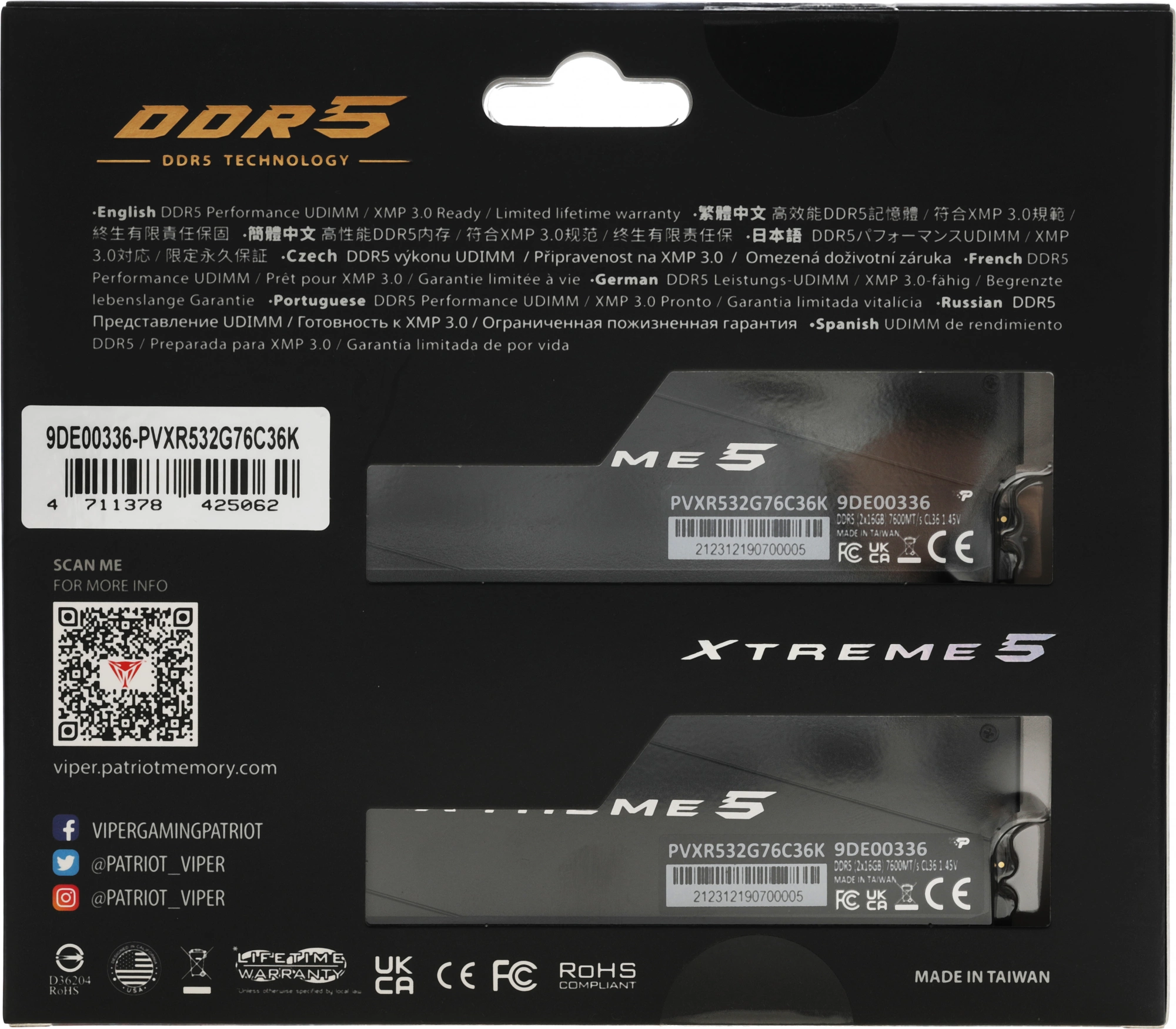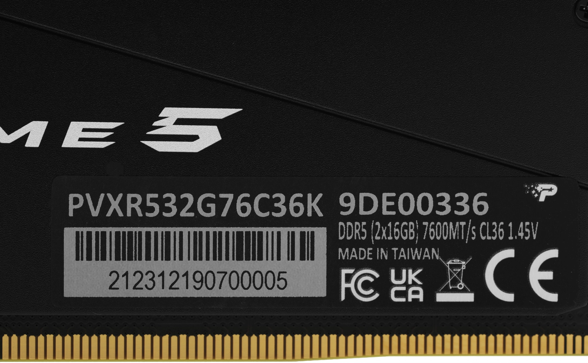 Оперативная память Patriot Viper Xtreme RGB Gaming 32Gb Kit 2x16Gb DDR5 7600MHz PC5-60800 CL36 DIMM 288-pin 1.45В с радиатором RTL [PVXR532G76C36K]