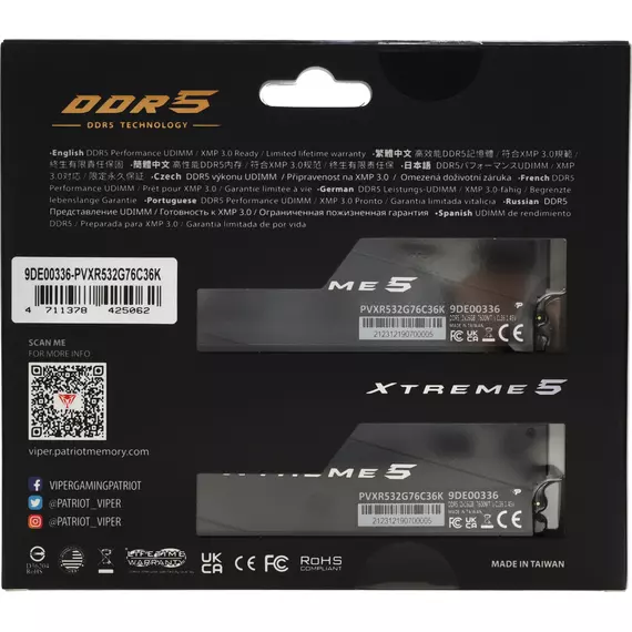 Описание Patriot Viper Xtreme RGB Gaming 32Gb Kit 2x16Gb [PVXR532G76C36K]