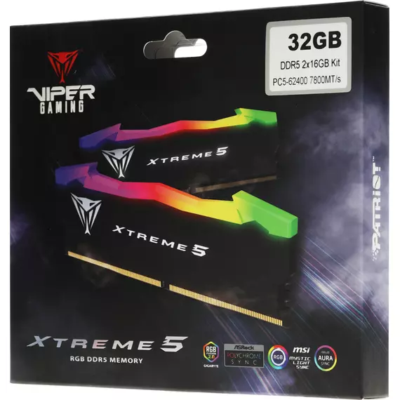Память Patriot Viper Xtreme RGB Gaming 32Gb Kit 2x16Gb DDR5 7800MHz PC5-62400 CL38 DIMM 288-pin 1.45В с радиатором RTL [PVXR532G78C38K]