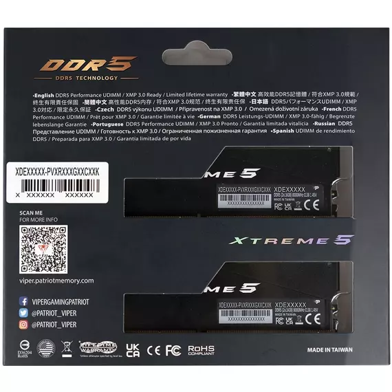 Описание Patriot Viper Xtreme RGB Gaming 32Gb Kit 2x16Gb [PVXR532G78C38K]