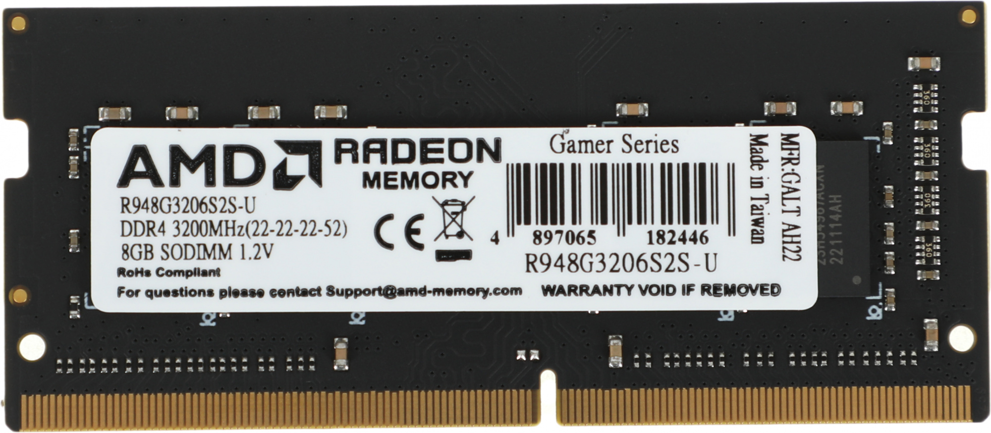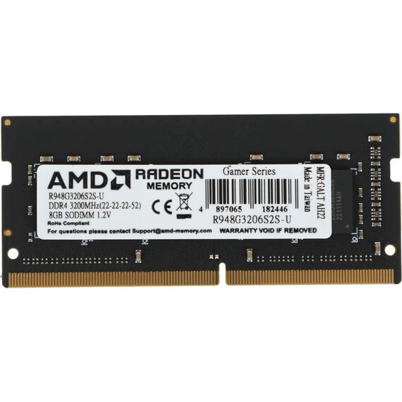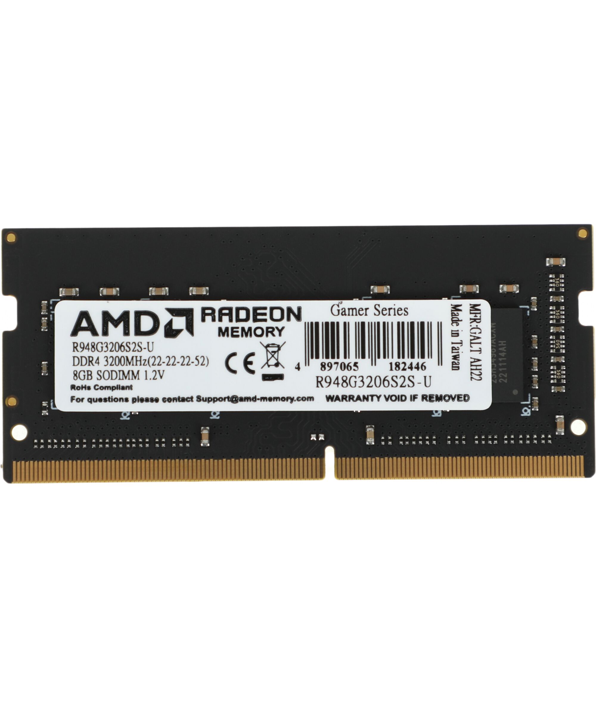 Модуль памяти AMD Radeon R9 Gamer Series 8Gb DDR4 3200MHz PC4-25600 CL22 SO-DIMM 260-pin 1.2В RTL [R948G3206S2S-U]